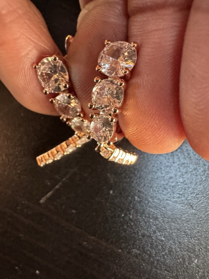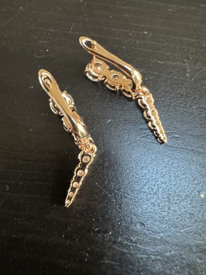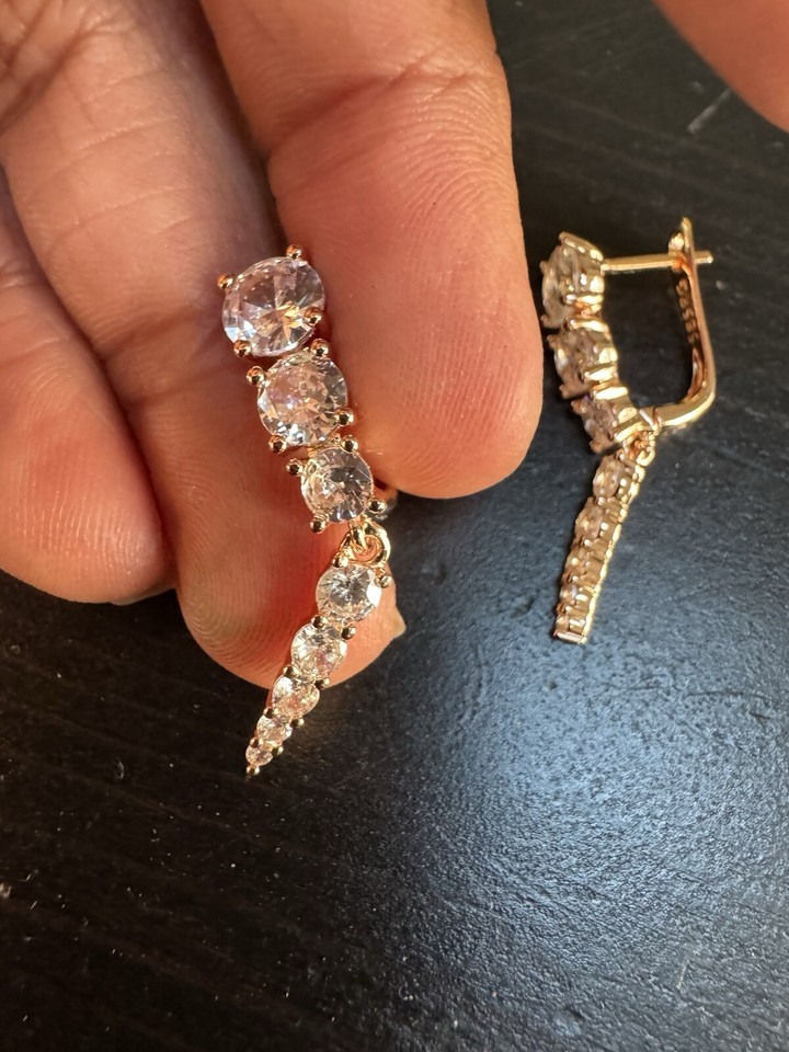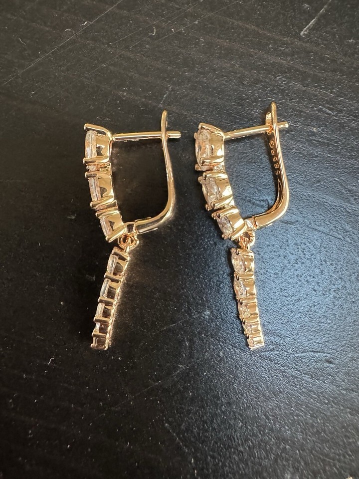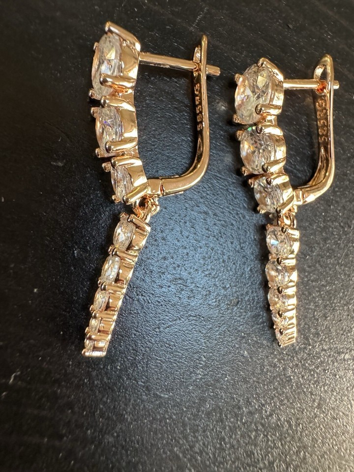 - 585 14K RG Rose Gold Stamped Linear Long Drop Sparkle Stud Earrings
