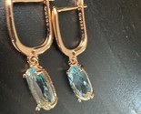 - 585 14K RG Stamped Aqua Marina Sparkle Dangle Stud Earrings