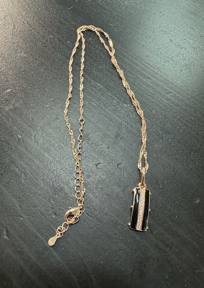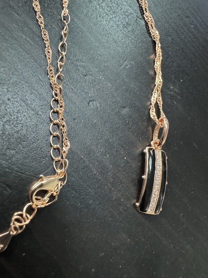 585 14K RG Stamped Black Enamel Pendant 19? Necklace Clasp Chain