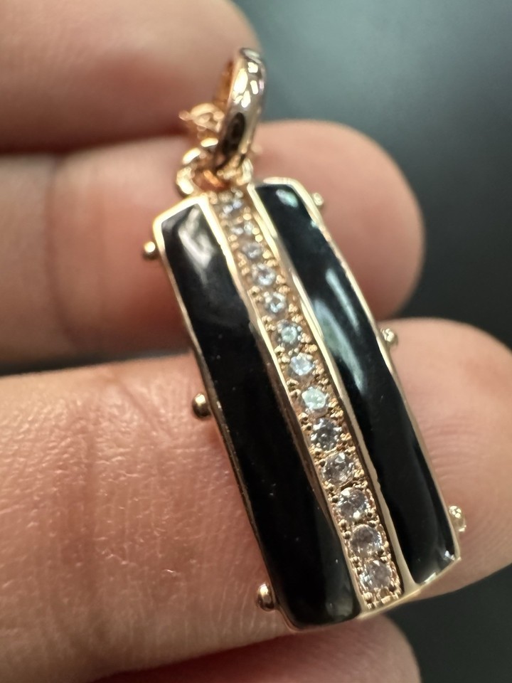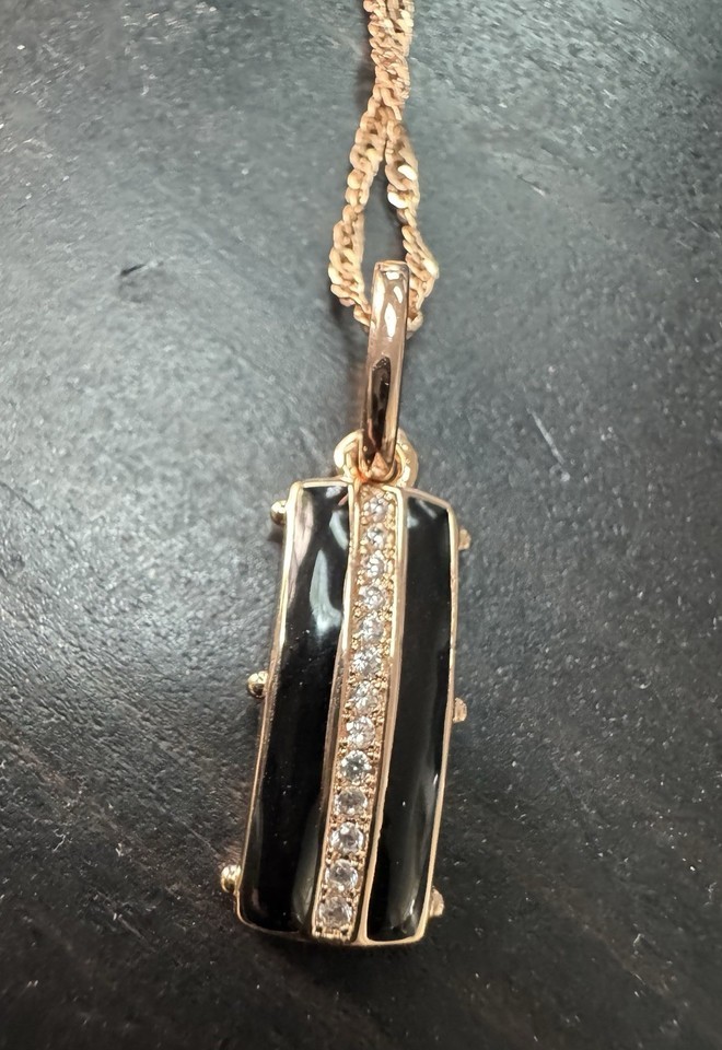 - 585 14K RG Stamped Black Enamel Pendant 19” Necklace Clasp Chain