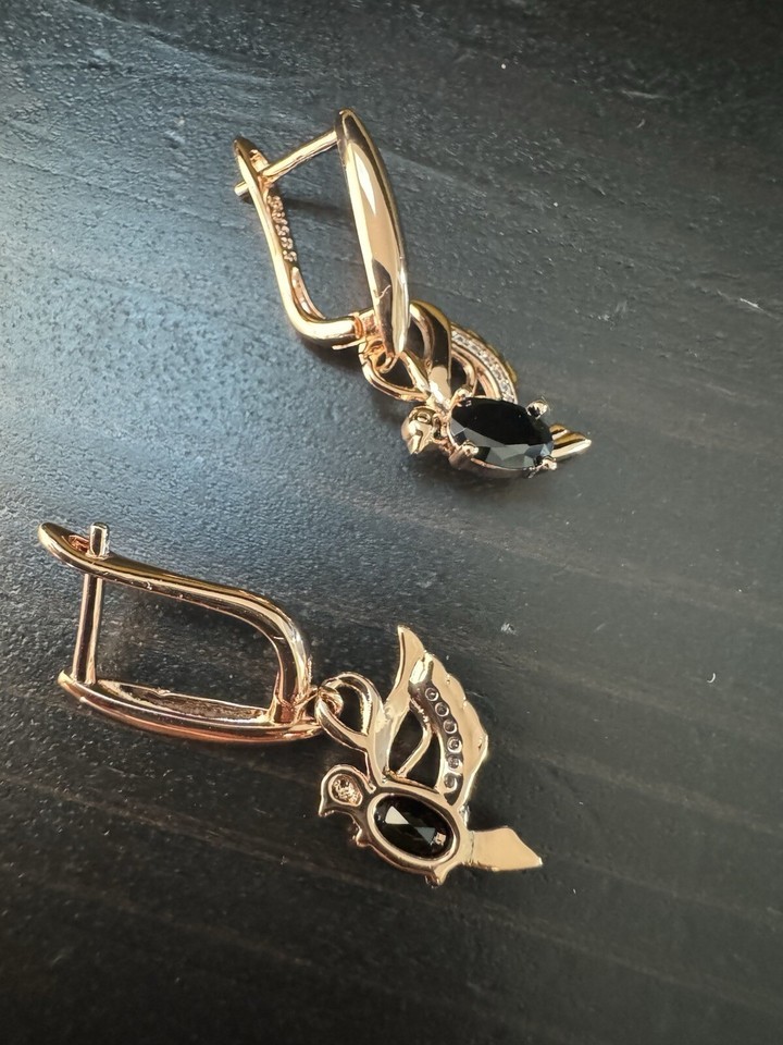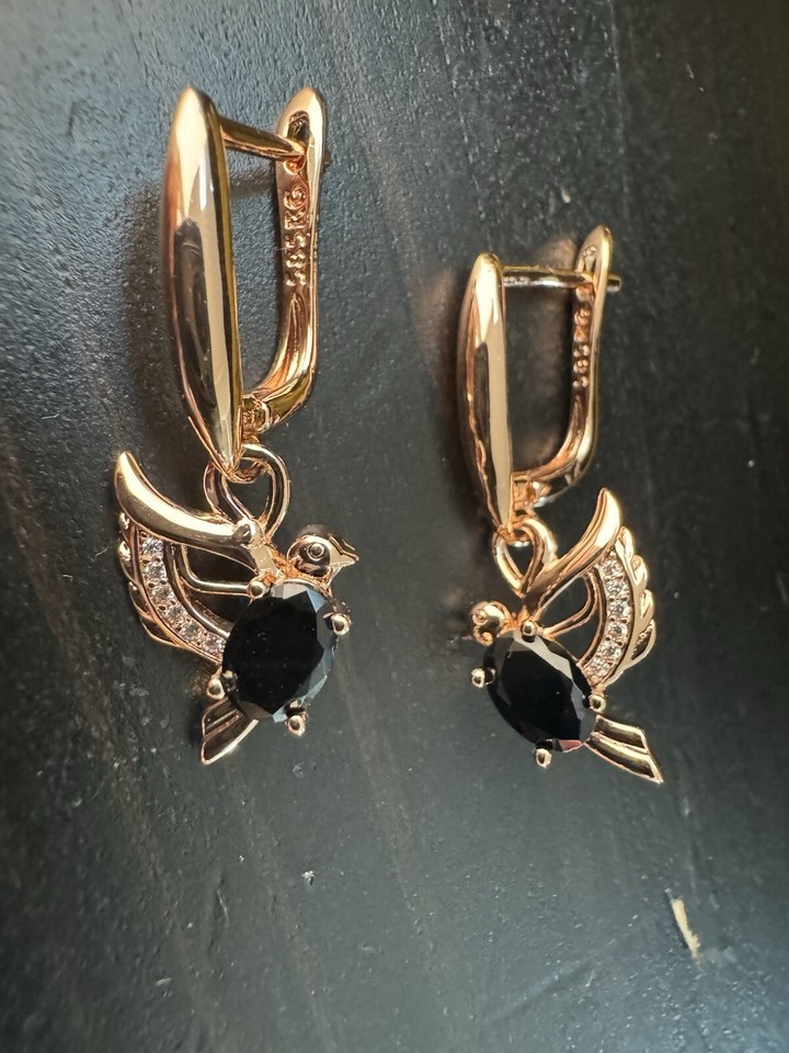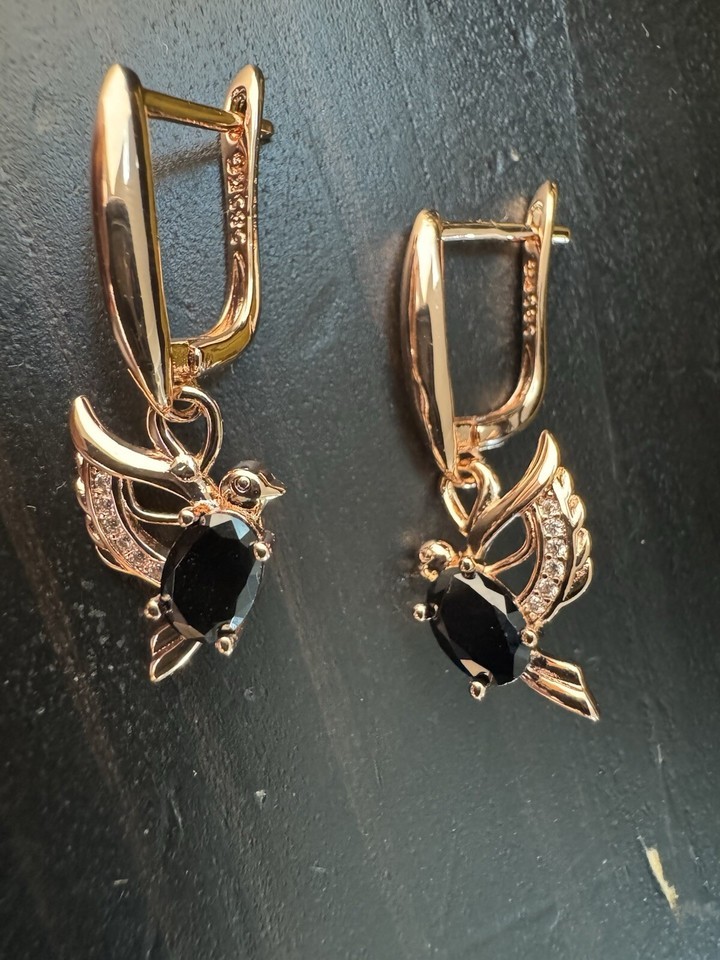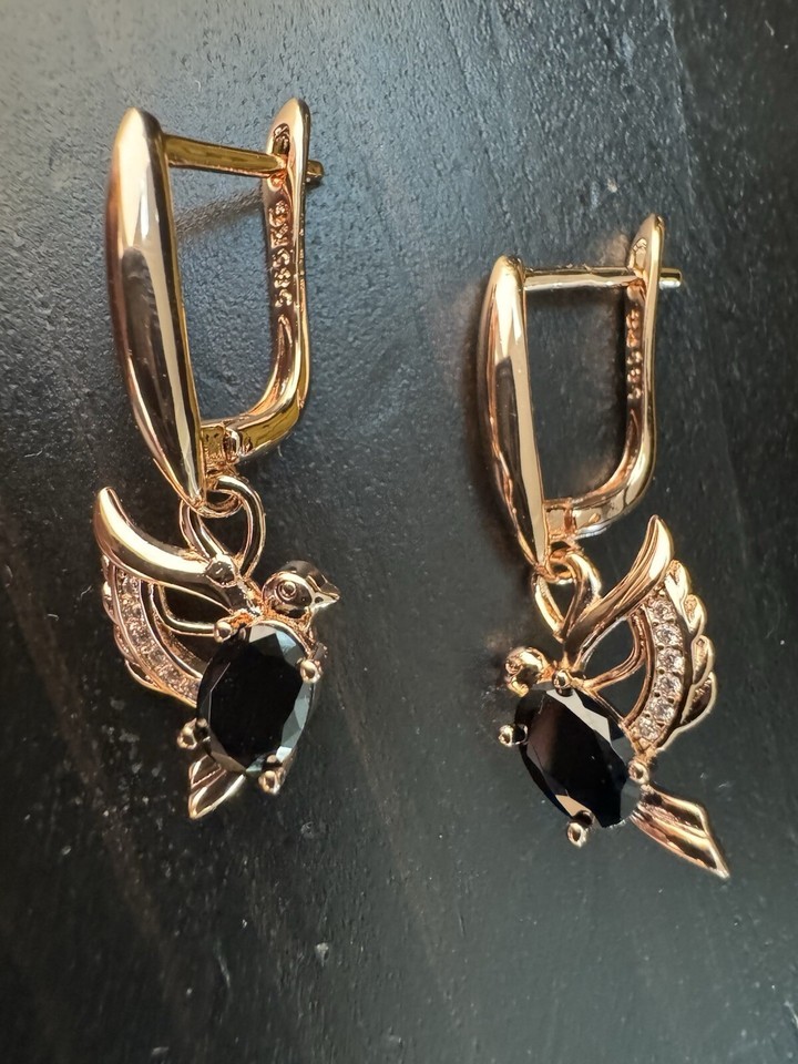 - 585 14K RG Stamped Black Sparkle Flying Bird Stud Earrings