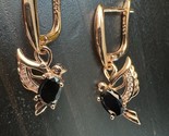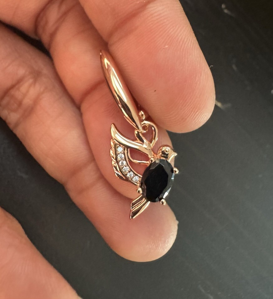 585 14K RG Rose Gold Stamped Black Sparkle Flying Bird Stud Earrings