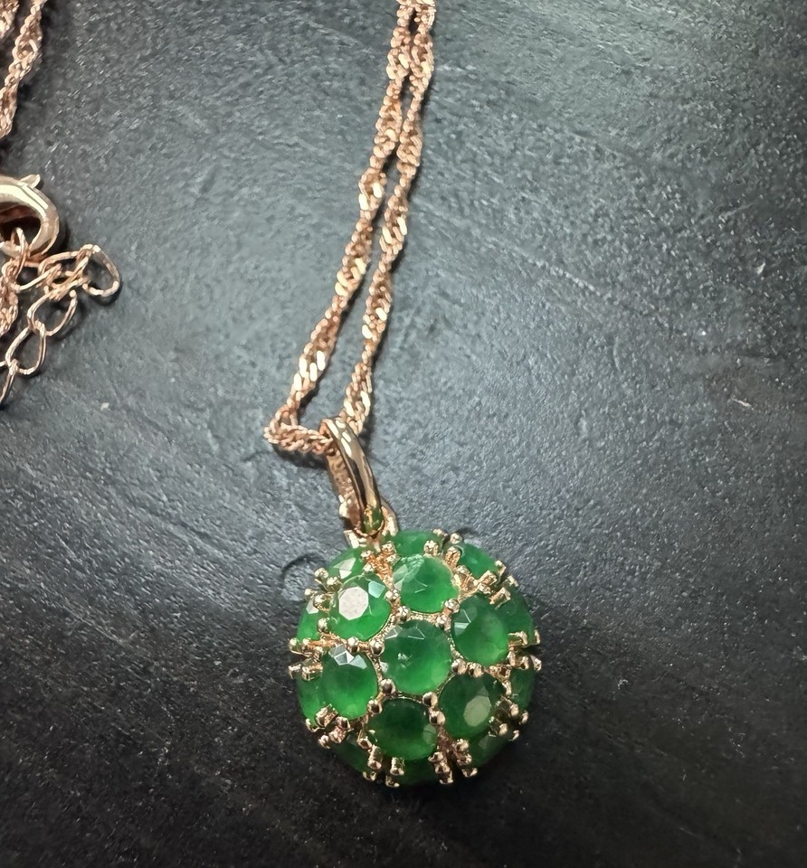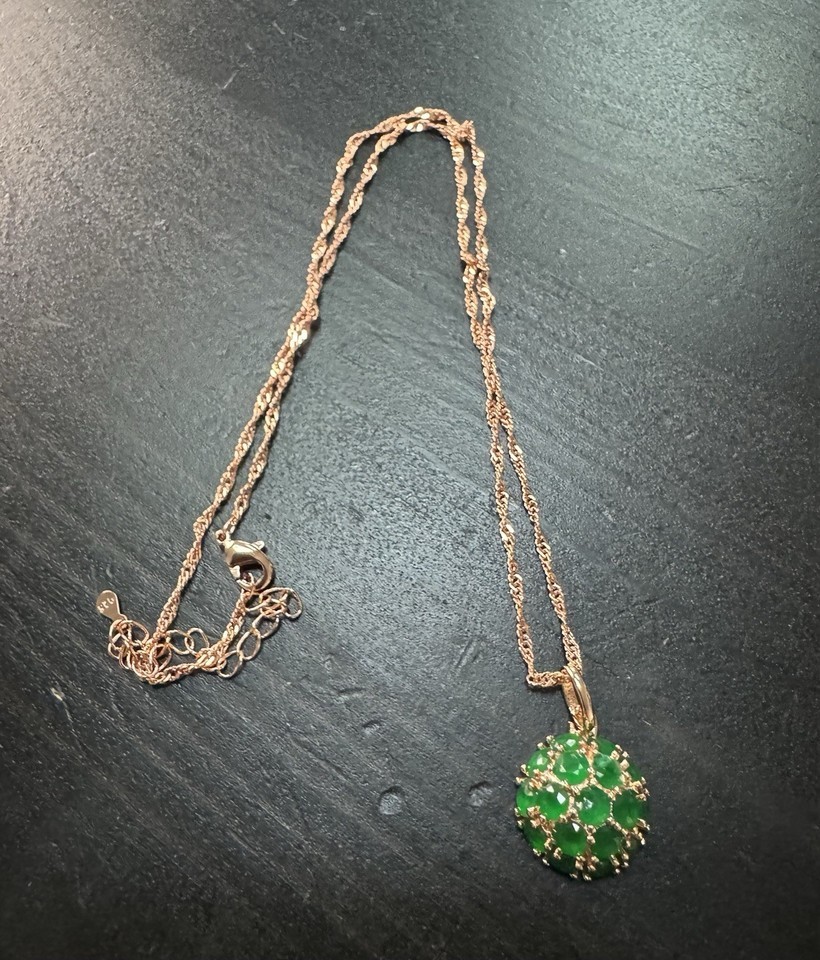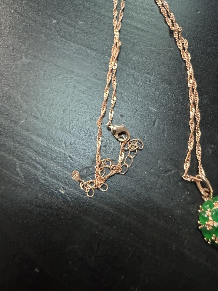 585 14K RG Stamped Cluster Green Emerald Gemstone Pendant 19? Necklace Chain