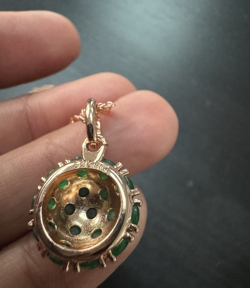 585 14K RG Stamped Cluster Green Emerald Gemstone Pendant 19” Necklace Chain