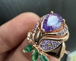 585 14K RG Rose Gold Stamped Heart Swan Purple Green Size 7 Ring