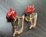 - 585 14K RG Stamped Romance Red Rose Enamel Stud Earrings