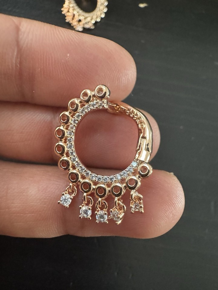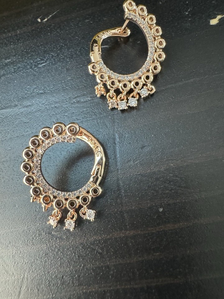 585 14K RG Rose Gold Stamped Eternal Swirl Hoop Dangles Sparkle Stud Earrings
