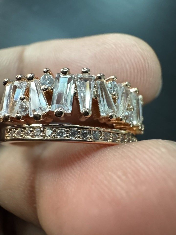 - 585 14K RG Stamped Rose Gold Symmetric Confetti Baguettes Adjustable Ring