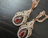 - 585 14K RG Stamped Rose Gold Victorian Cross Jewel Dangle Stud Earrings