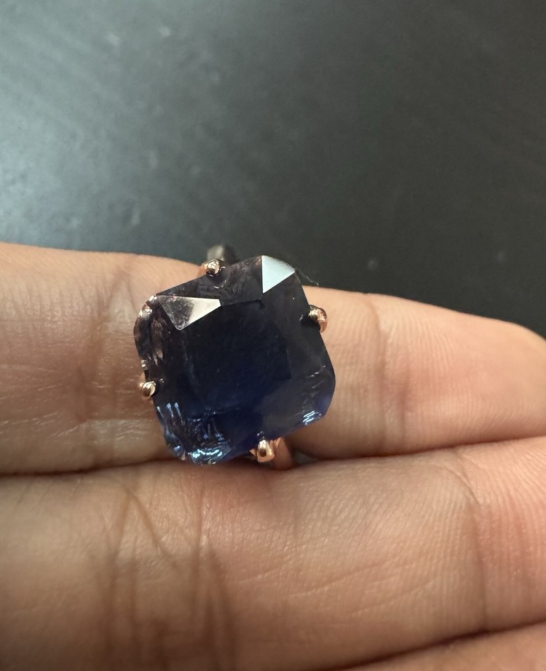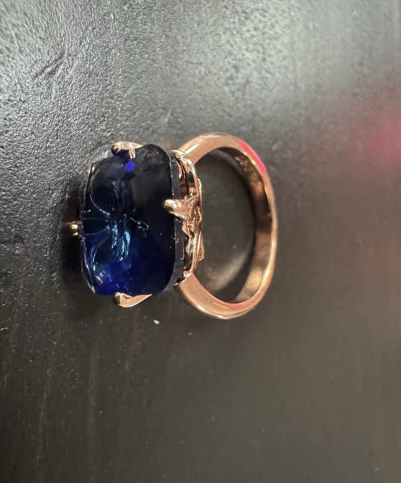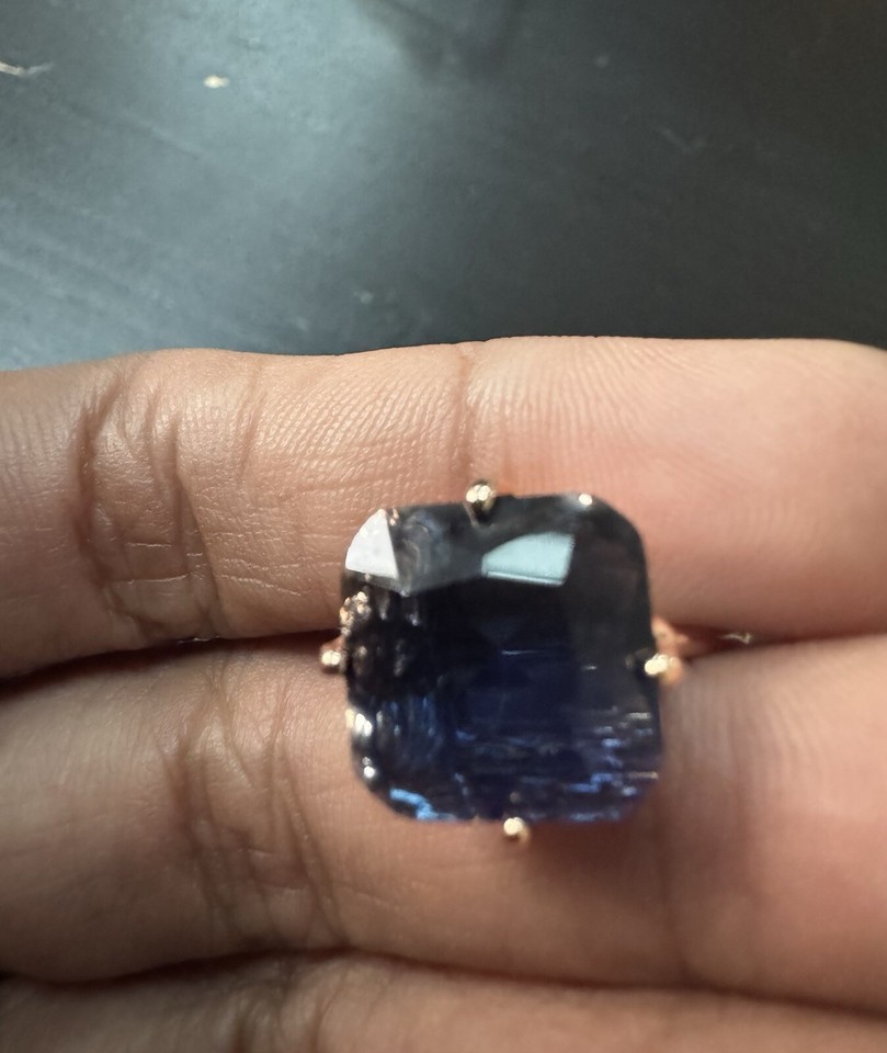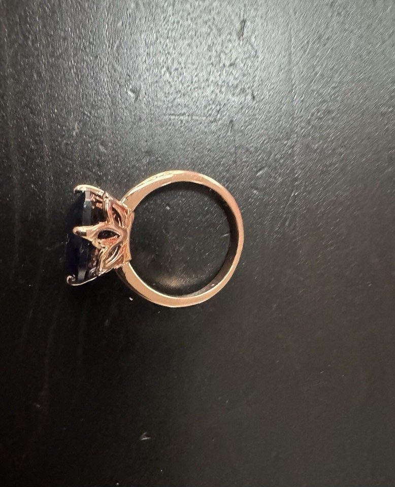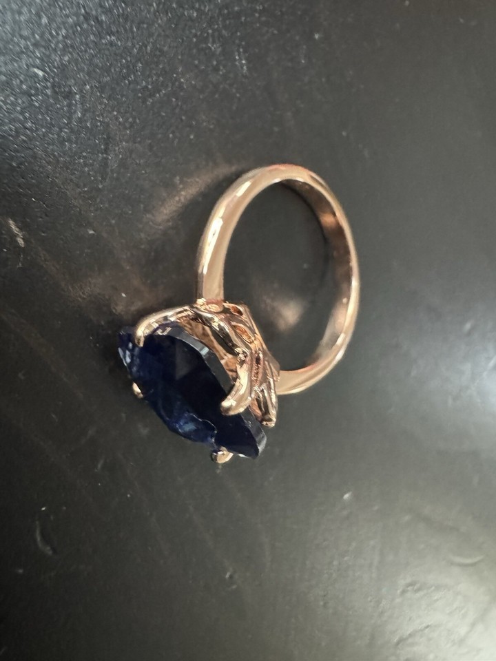 585 14K RG Rose Gold Stamped Square Navy Sparkle Gemstone Size 7 Ring