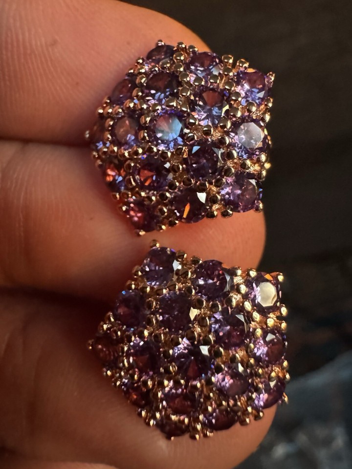 585 14K RG Rose Gold Stamped Zirconia Amethyst Purple Cubic Stud Earrings