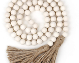 - 58In Wood Bead Garland with Tassels, Farmhouse Rustic Country Decor Prayer Boho