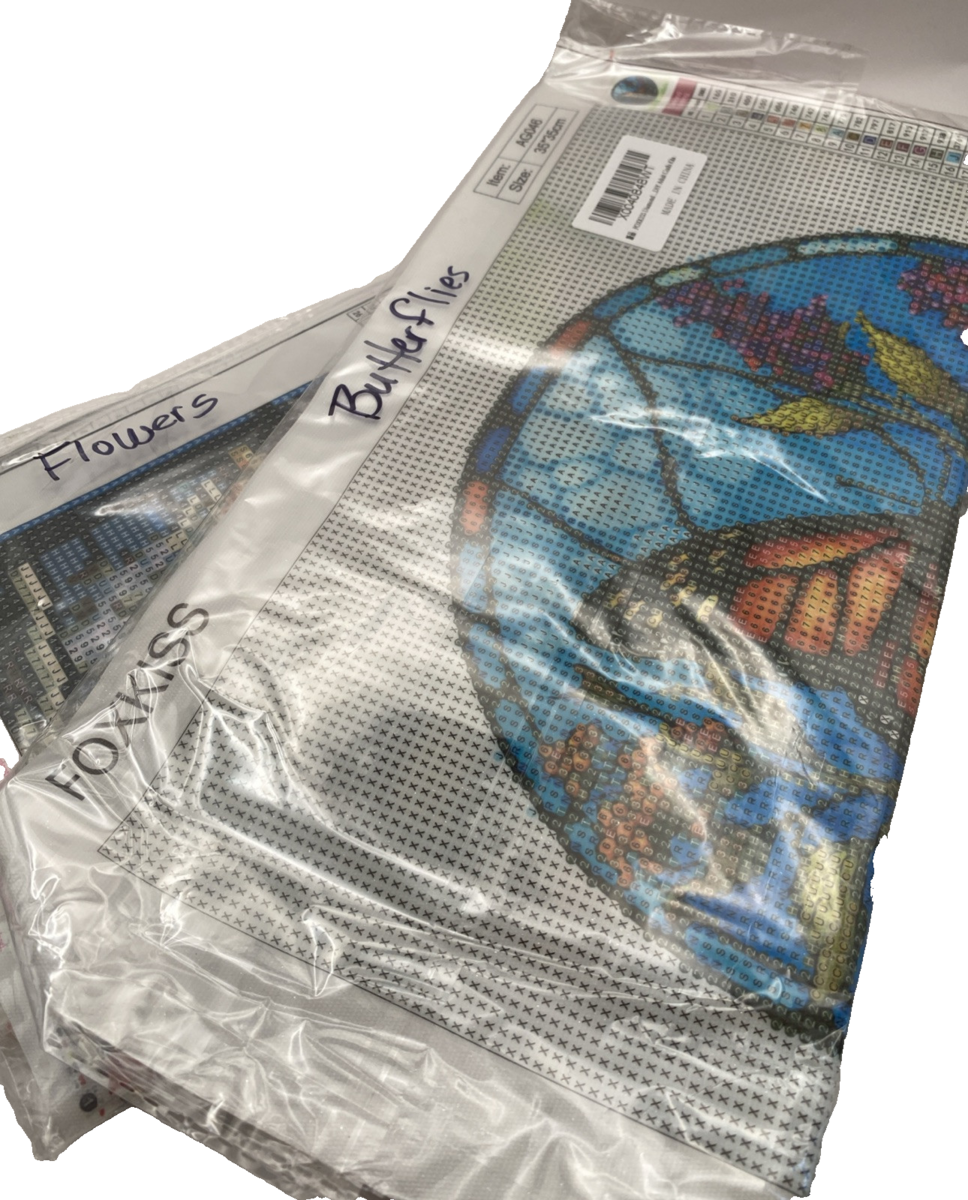 - 5D Diamond Painting Kits 35 cm x 35 cm Flowers/Butterflies Lot of 2 NEW