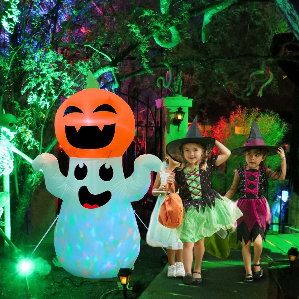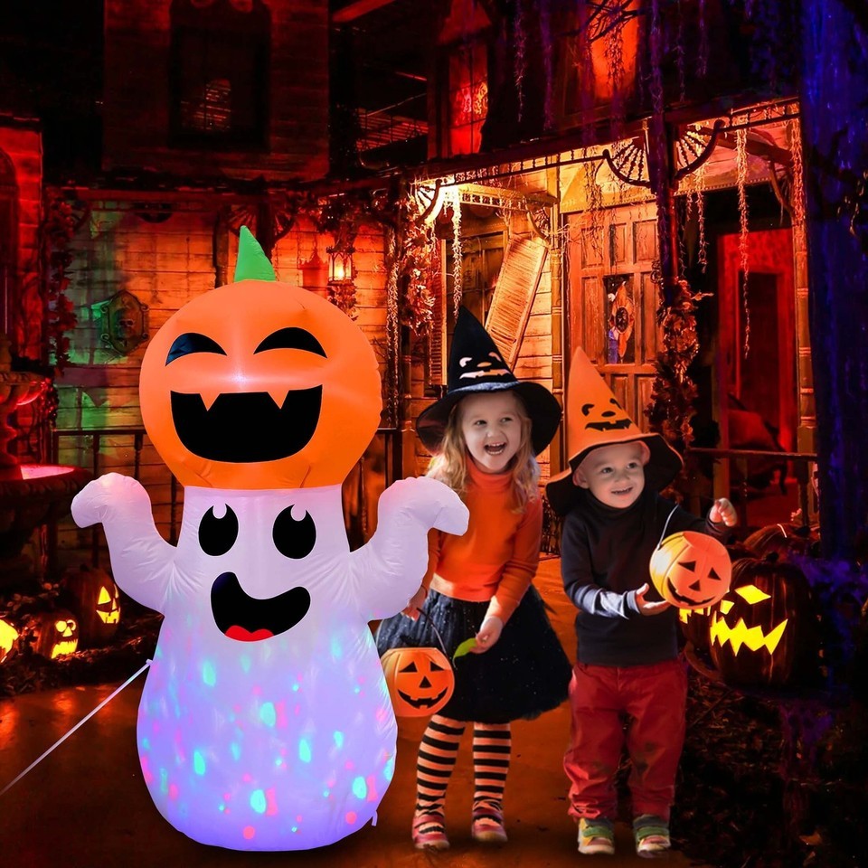- 5Ft Halloween Inflatable Pumpkin Ghost with 360° Rotating Colorful LED Lights