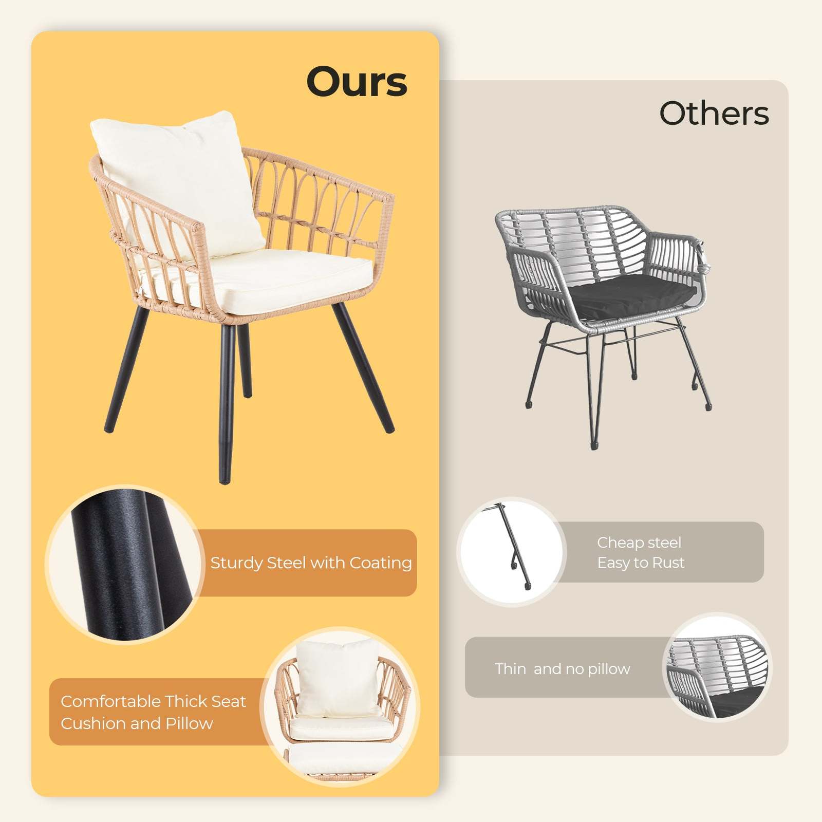 ?Friendly Design:That 5 Piece Patio Bistro Set with thickened seat and back cushions provide you a more comfortable sitting feeling. In addition, the subtle curved design between the armrest and the backrest not only improves the support, but also relieves fatigue throughout the day.
