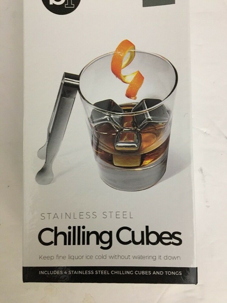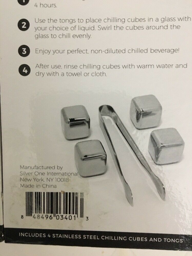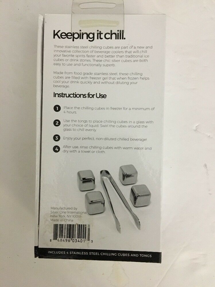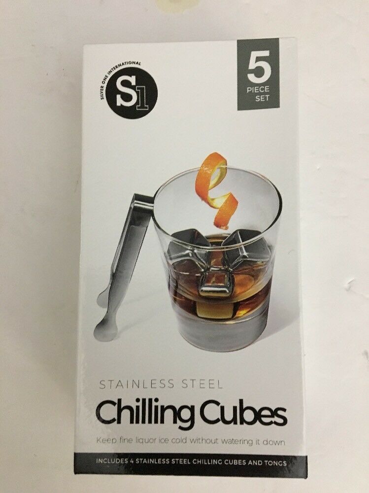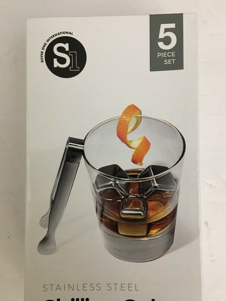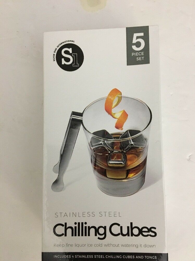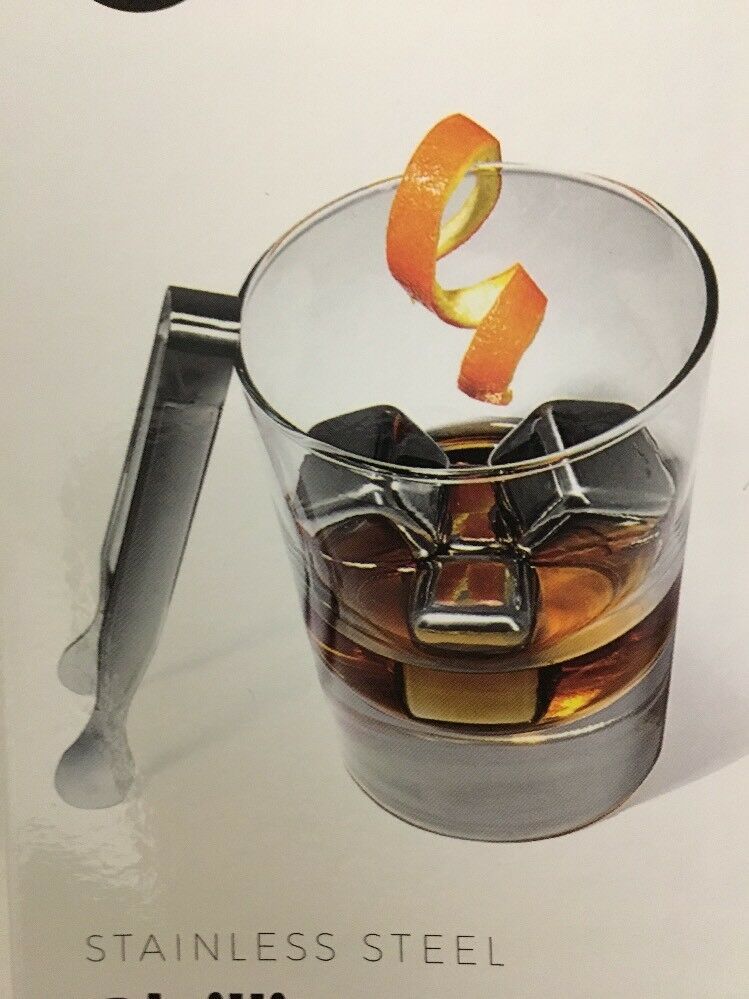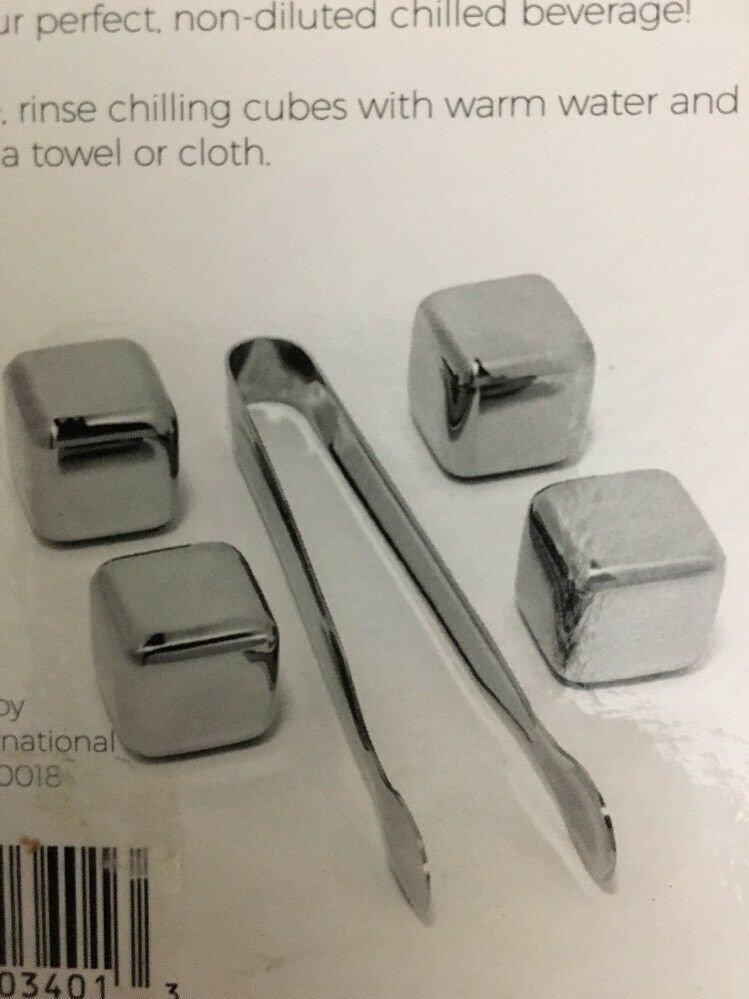 - 5PC Set Stainless Steel Ice Cubes Chilling Stones Rocks Reusable with Tong NWT
