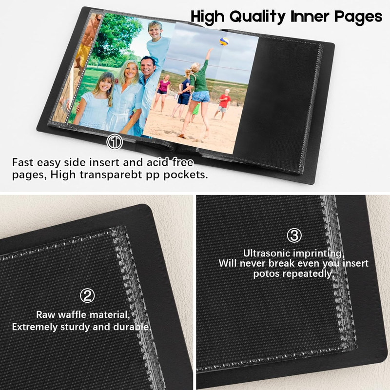 5X7 Photo Album Holds 64 Photos Black Inner Pages with Strong Elastic Band, Smal