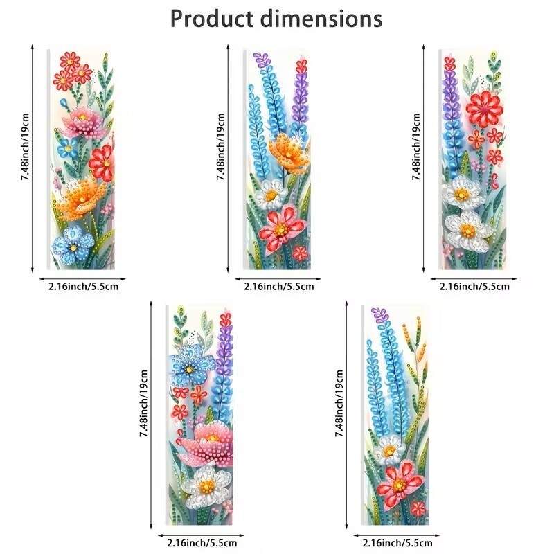 - 5pcs Spring Floral Bookmarks Diamond Jewel Art COMPLETED, SEALED