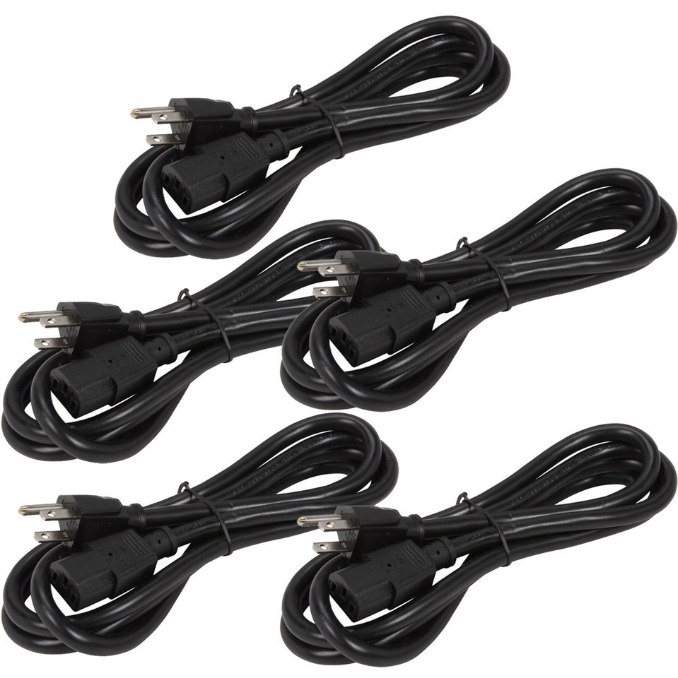 - 5pk 6ft 16 AWG Universal Power Cord (IEC320 C13 to NEMA 5-15P) PC Ballast Cables