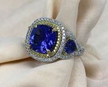 6.49 TCW GIA Violett Kissen Brillantschliff Tansanit Diamantring 14k Weiss Gold