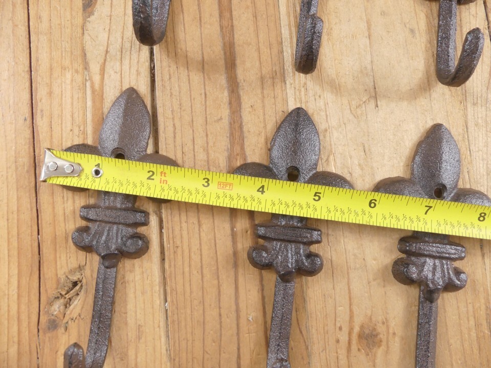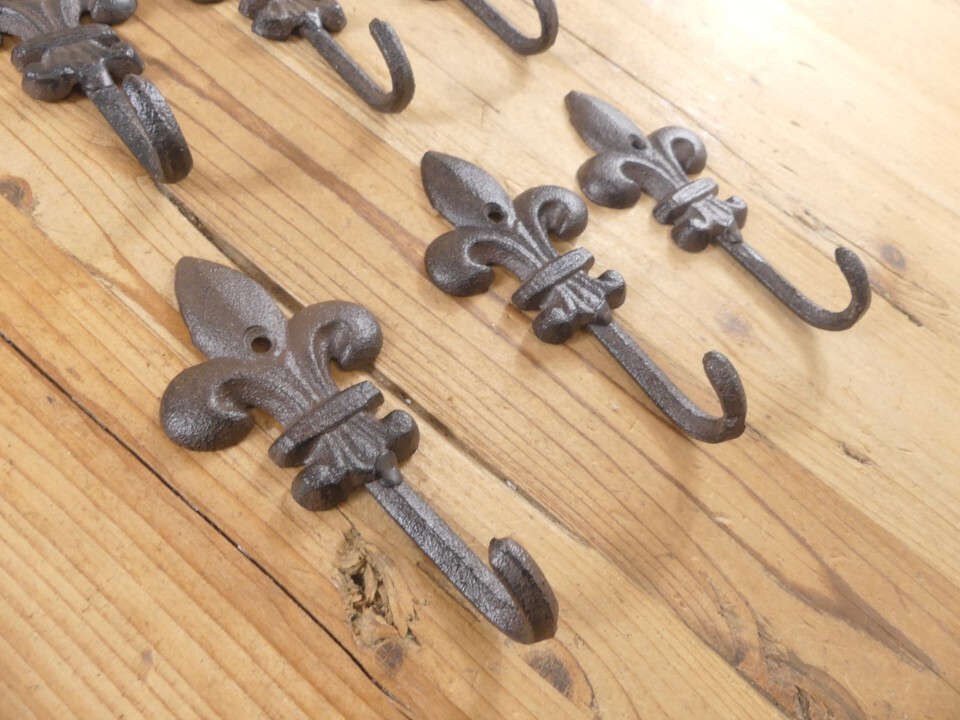 - 6 Cast Iron Fleur De Lis Coat Hooks Hook Hall Tree Hat Dog Leash Fluer French
