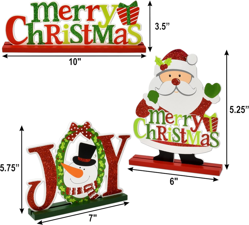 Dimensions: Happy Holidays Snowman and Merry Christmas Santa measure 8 OE? High x 6? Wide; Joy, Noel and Believe measure 5 ? High x 7 oe? Wide. Merry Christmas measures: 3 oe? High x 10? Wide