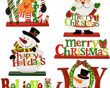 6 Christmas Table Signs Decorations Wooden Centerpiece Tabletop Snowman Wood Desktop Decor for Kitchen Home Xmas Holiday Party Supplies
