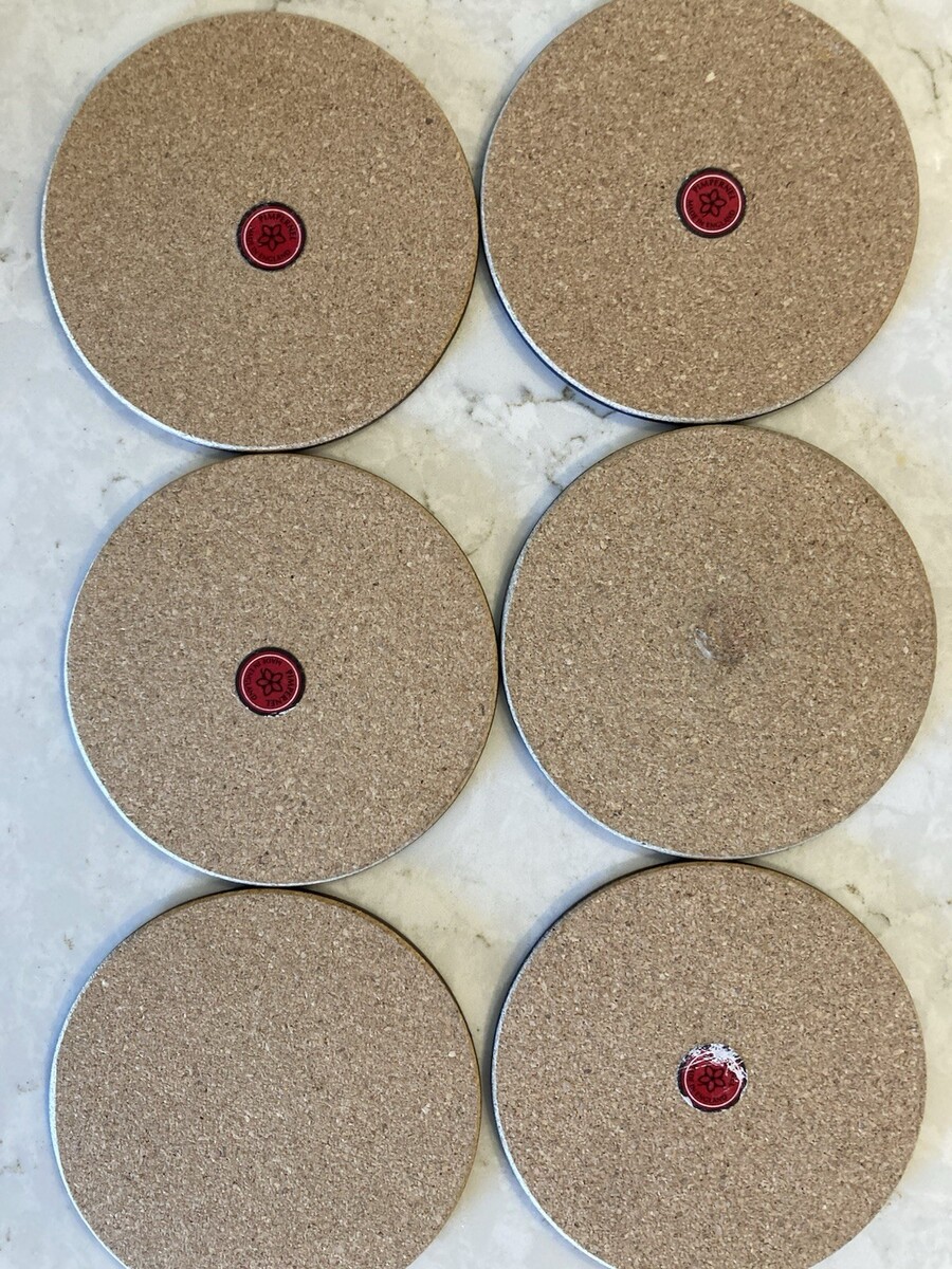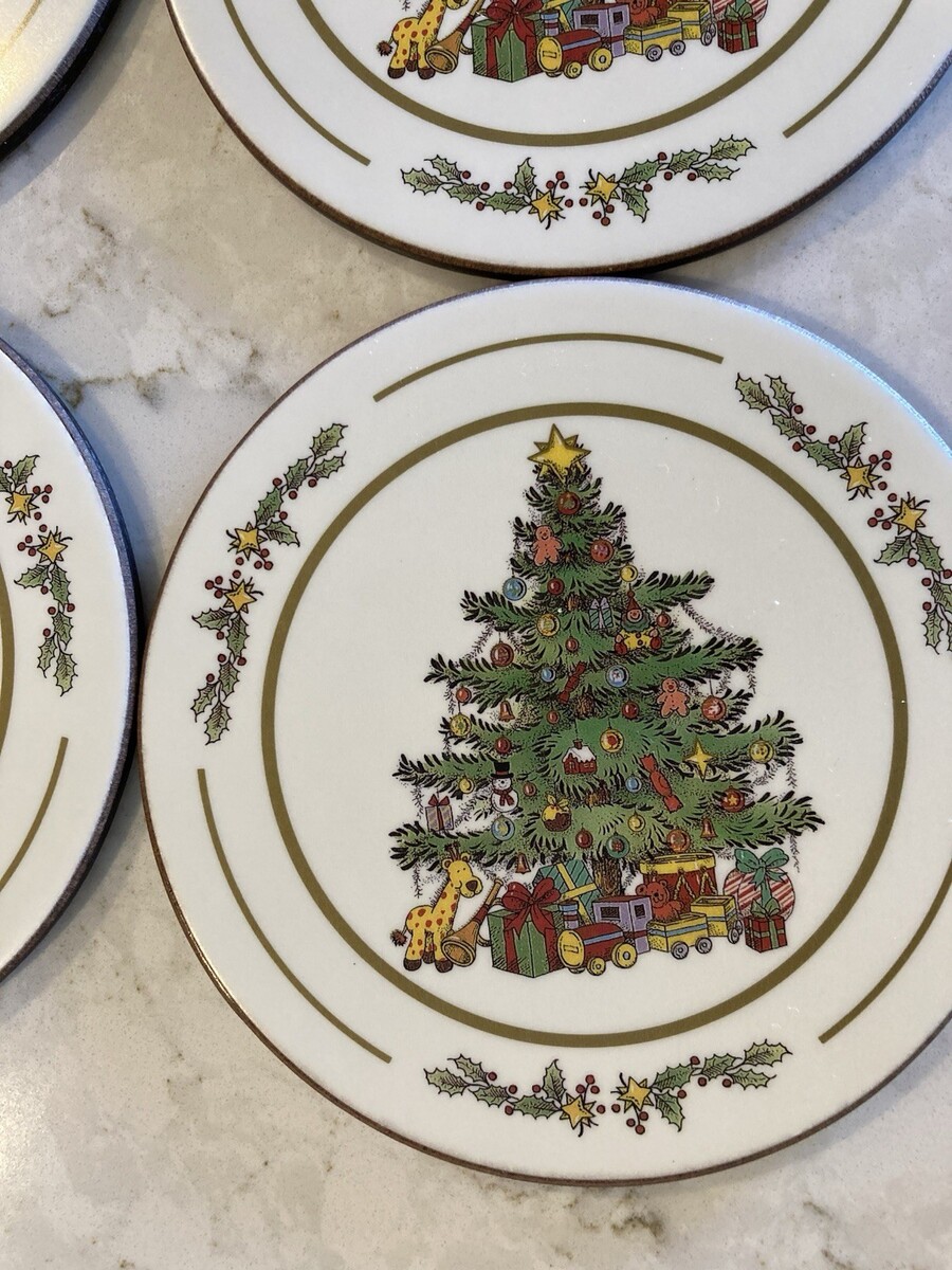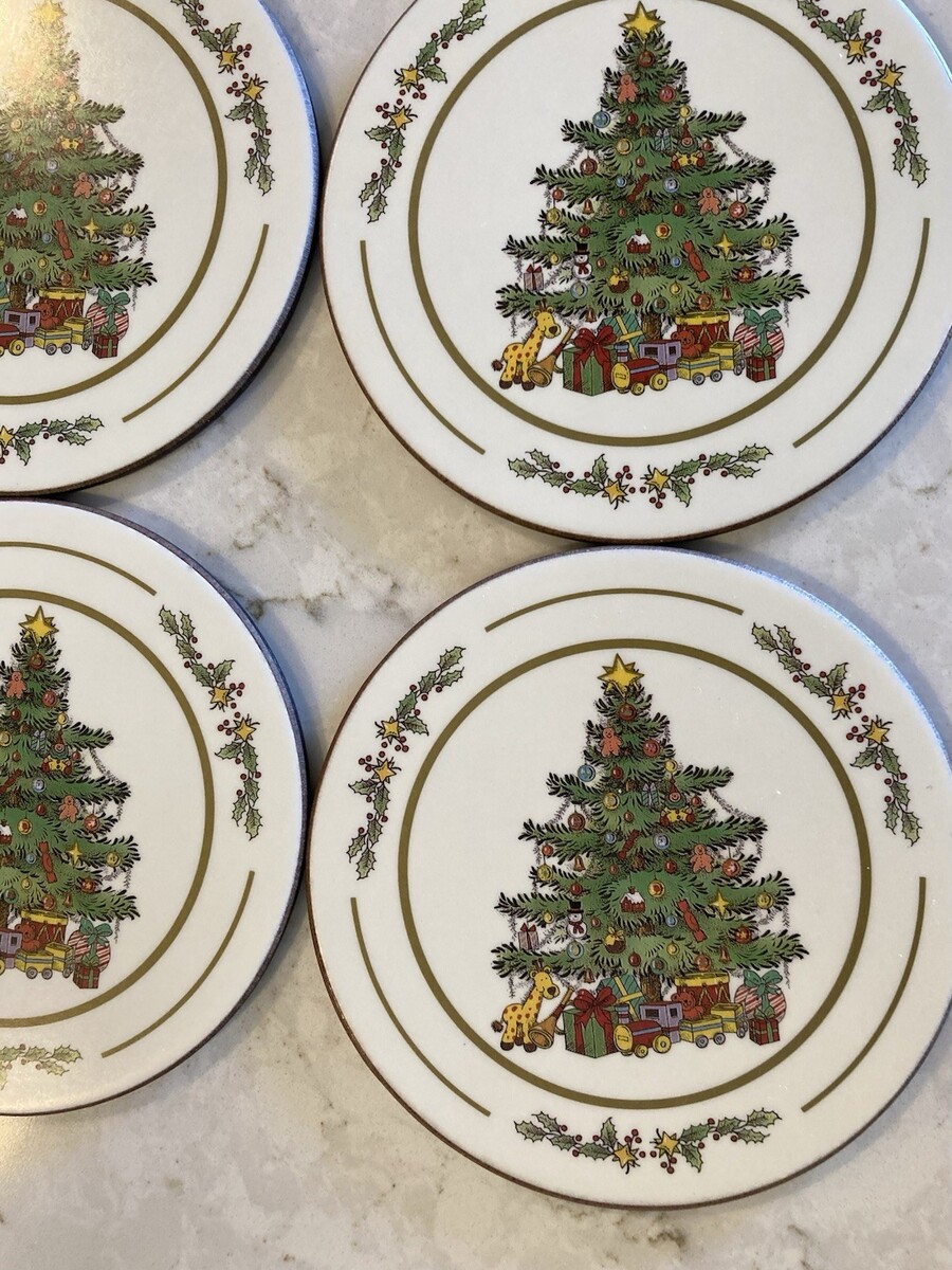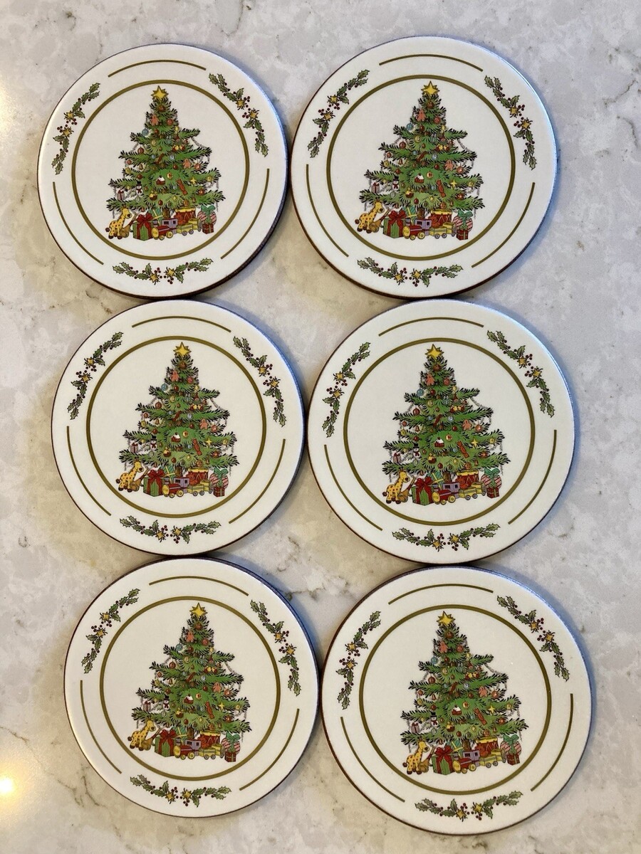 - 6 Christmas Tree Round Coasters Pimpernel Set 6 Cork Back.