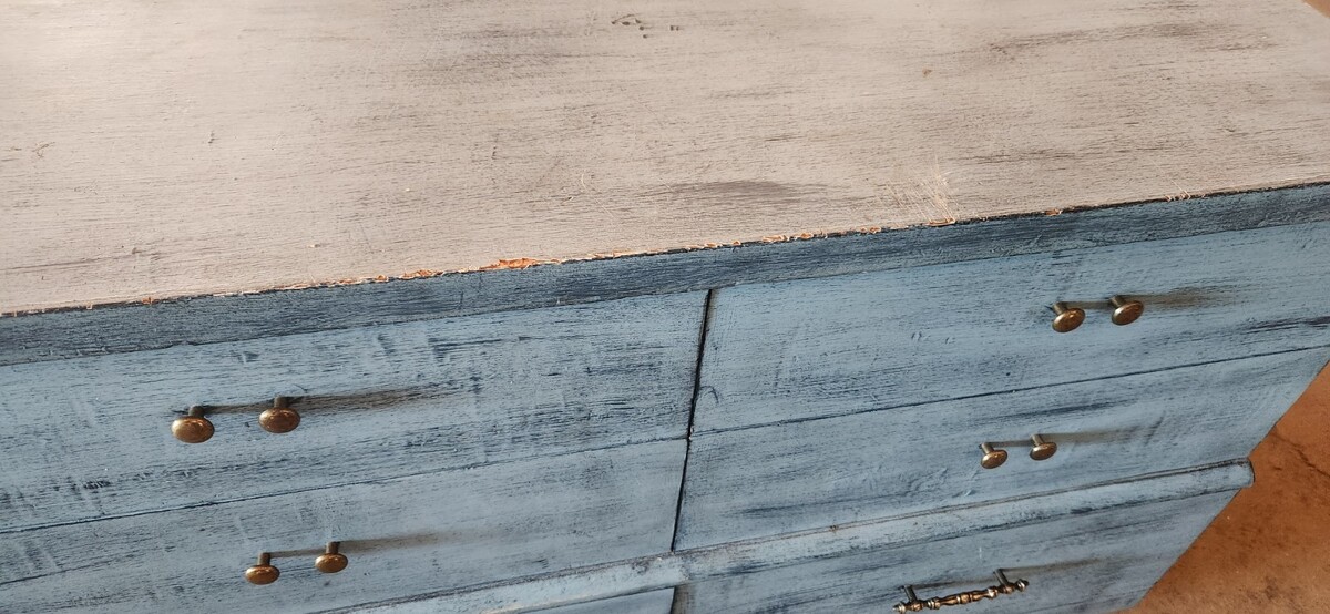 - 6 Drawer Dresser Vintage Blue Distressed Painted MCM