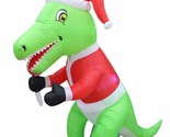 6 Foot Tall Lighted Christmas Inflatable Green Dinosaur with Christmas Hat and Lollipop Yard Decoration