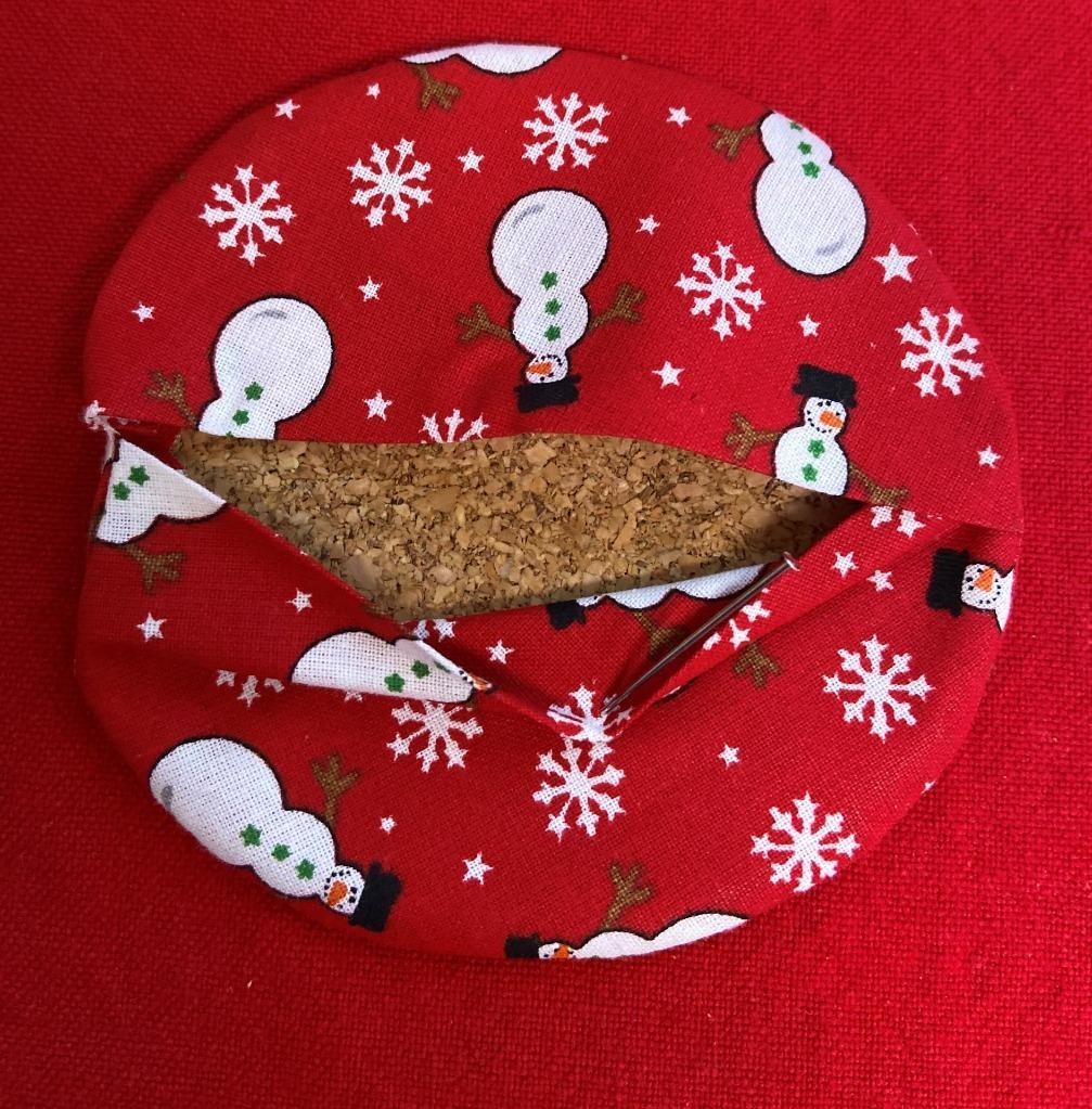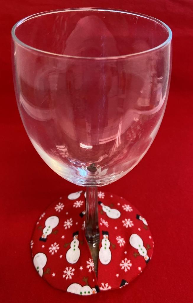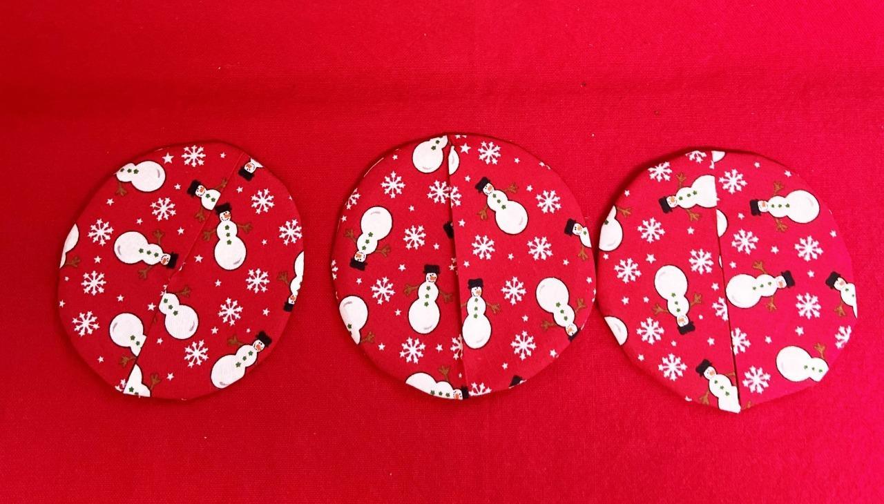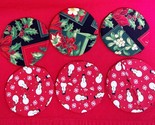 - 6 Hand Sewn Christmas Round Wine Coasters 2 Patterns Snowmen & Holly w Berries