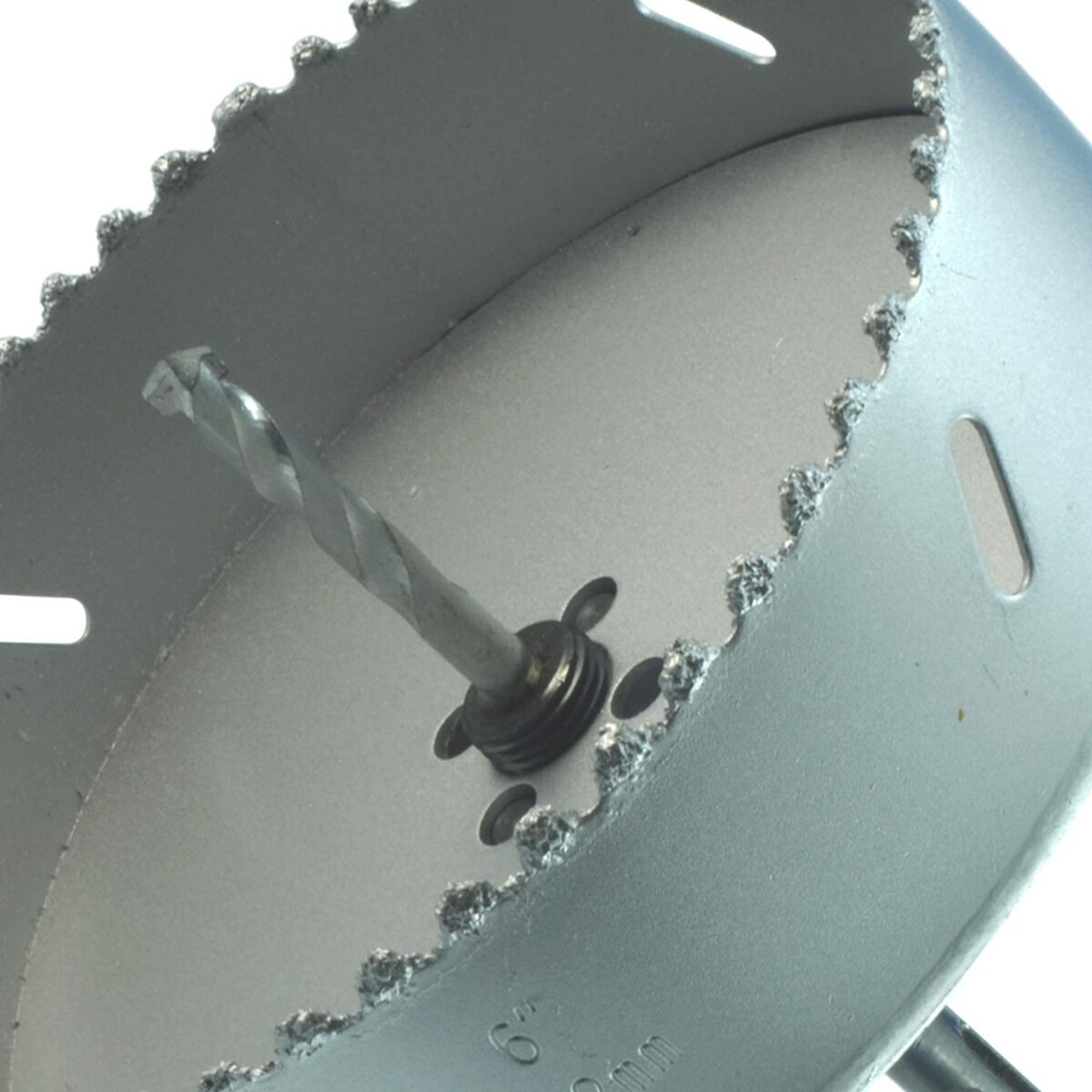 Product description: Drywall Carbide Hole Saw With Tungsten Carbide Grit Have Gulleted Carbide Grit Serrated Edge Blade Gives A Smooth Fine Finish Used Dry. Carbide Grit Is Perfect Can Light Saw / Hole Saw For Can Lights For Cutting Holes In Drywall Ceiling For Recessed Lighting 4 Inch To 6 Inch Can Hole Cutter, Tungsten Grit Hole Cutters Can Bore In Both Directions So Can Be Reversed, Can Be Wire Brushed Clean To Increase Life Span When Drilling Holes In Soft Materials. Can Be Used In Corded Or Cordless Drills. Great For Boat Building Recessed Led Light Saw Installing Atmos Speakers In Ceilings And Wall Speakers. Add A Hole Saw Extension From Our List to prevent stretching. Cutting Materials List : Drywall Plaster With Lath Hardy Board Marble Slate Travertine Hardie Board Plaster And Cement Siding Cement Board Backer Board Styrofoam Pvc Acrylic Composite Boards Epoxy Resin Carbon Fiber Glass Reinforced Plastic Cfrp Carbon Fiber Reinforced Plastic, Plasterboard. Remember Carbide Drill Bits And Carbide Hole Saw Set are Not Designed For Dense Stone And Granite, Thats What Our Diamond Grit Edge Hole Saws And Core Bits Are For.