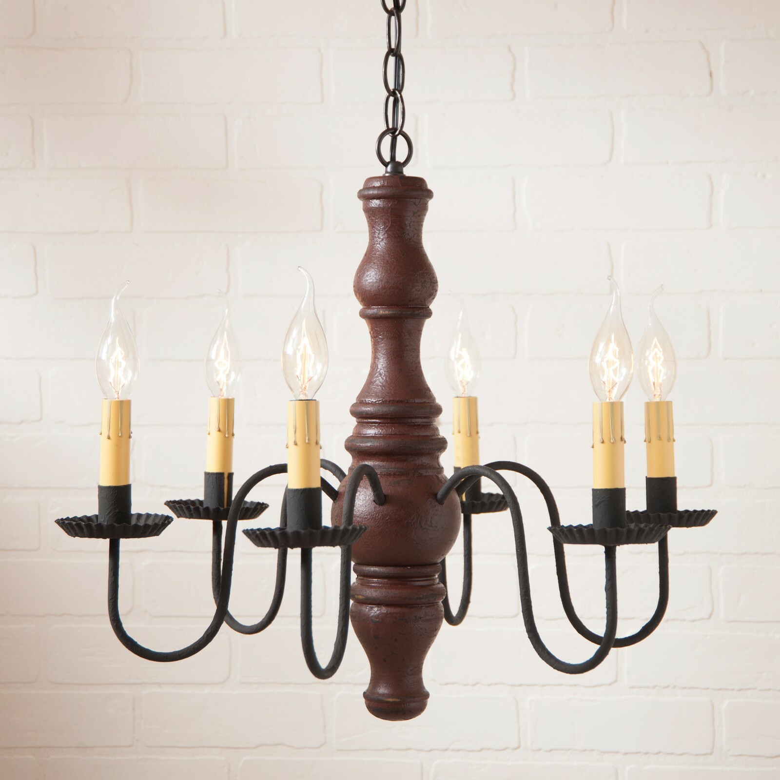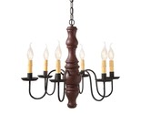 6 Light Chandelier "Gettysburg" Wood Metal Fixture, Americana Red, USA Handmade