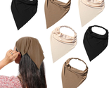 6 Pack Hair Scarf Headband for Women Elastic Bandana Head Scarf Large Boho Triangle Kerchief with Clips Non Slip Scarves