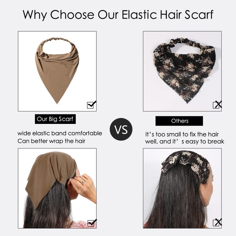 - 6 Pack Hair Scarf Headband for Women Elastic Bandana Head Scarf Large Boho Trian