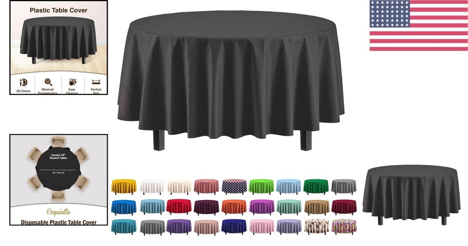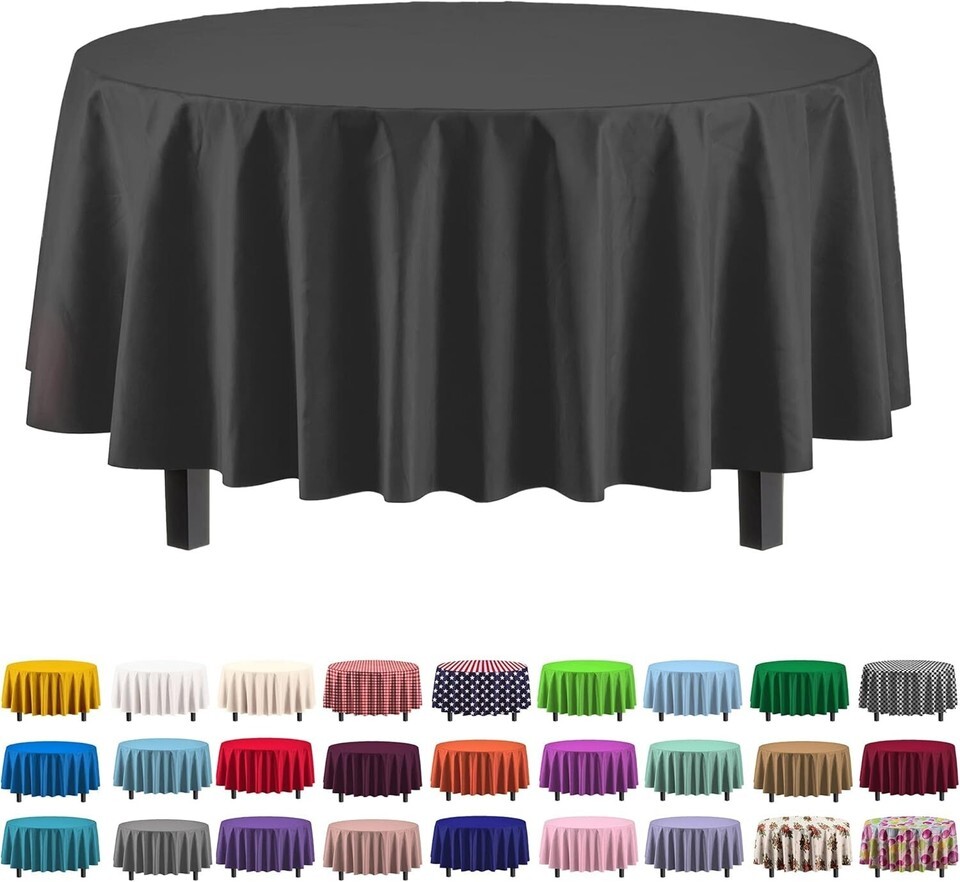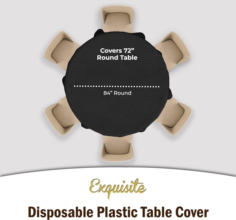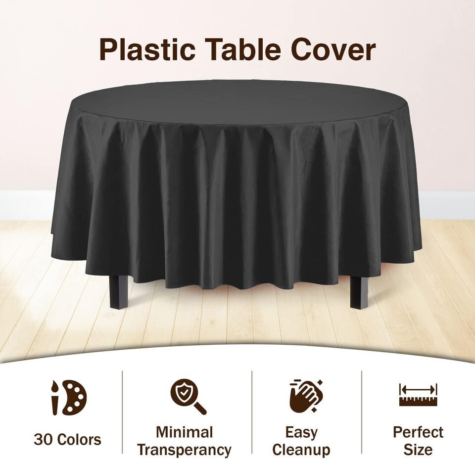 - 6-Pack Premium Black Plastic Tablecloths, 84in Round - Elegant Dining Solution
