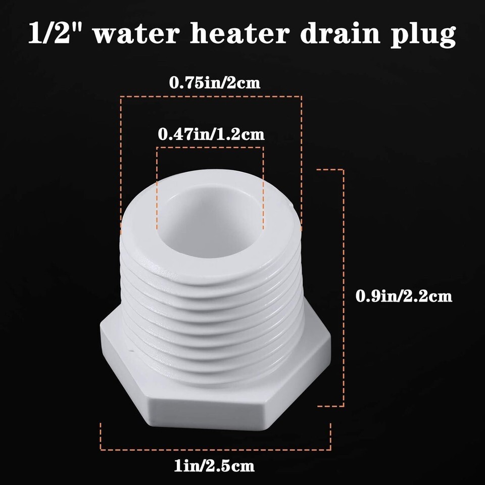 Designed to replace 1/2 inch water heater drain plugs.