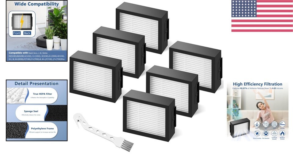 Experience the difference in your cleaning routine?order your 6 Pack Roomba Filters today and maintain a dust-free sanctuary for you and your loved ones!
