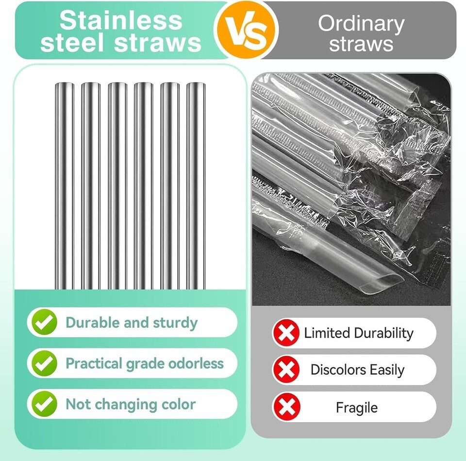 Durable and Eco-Friendly: Say goodbye to plastic straws; our stainless steel options are built to last, resistant to discoloration, and completely reusable.