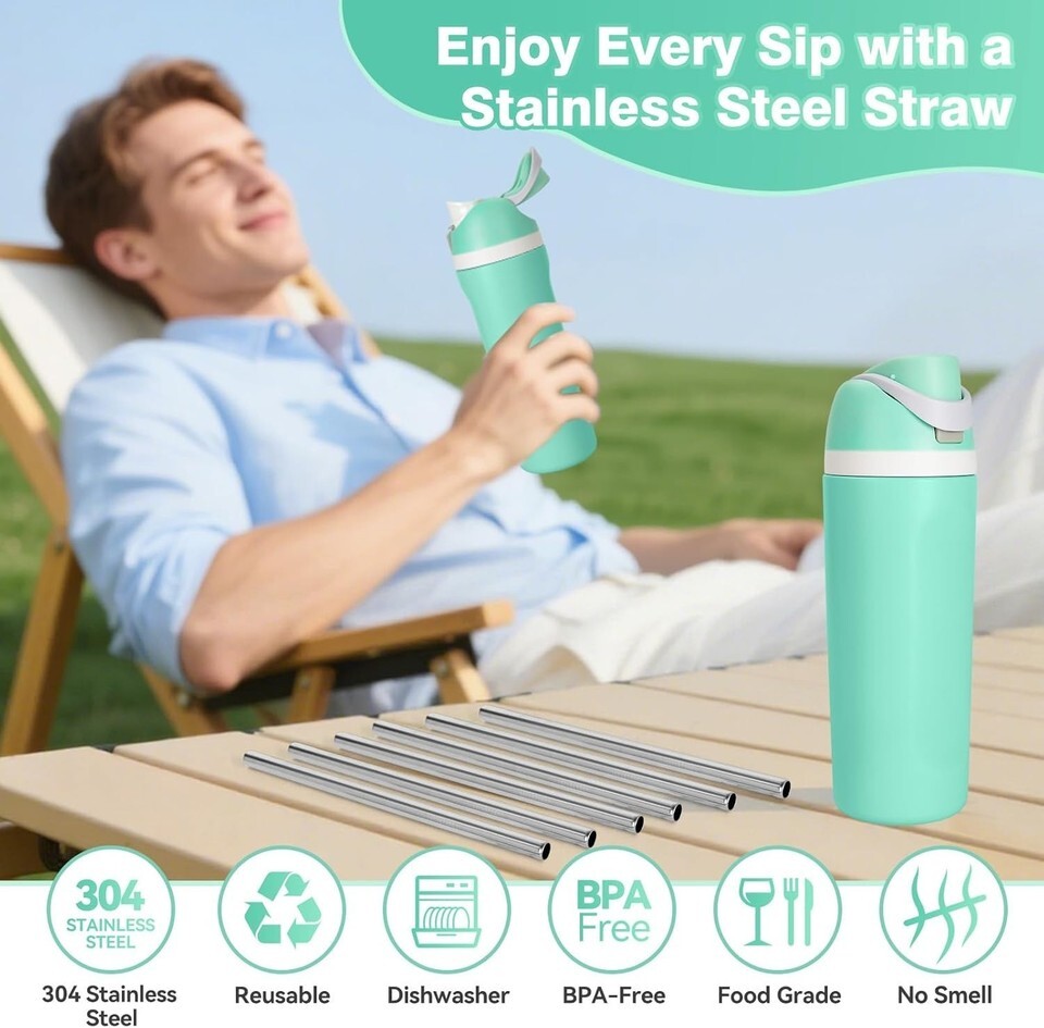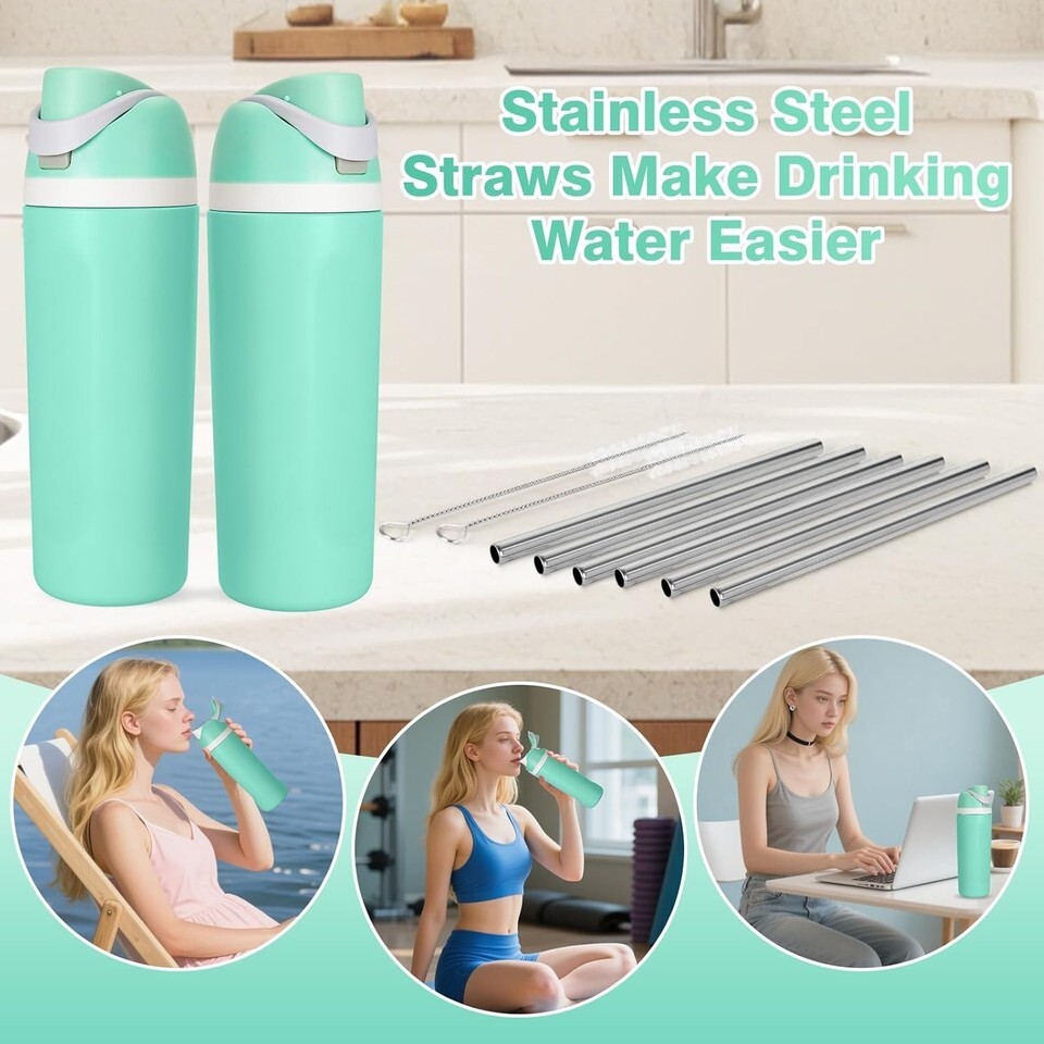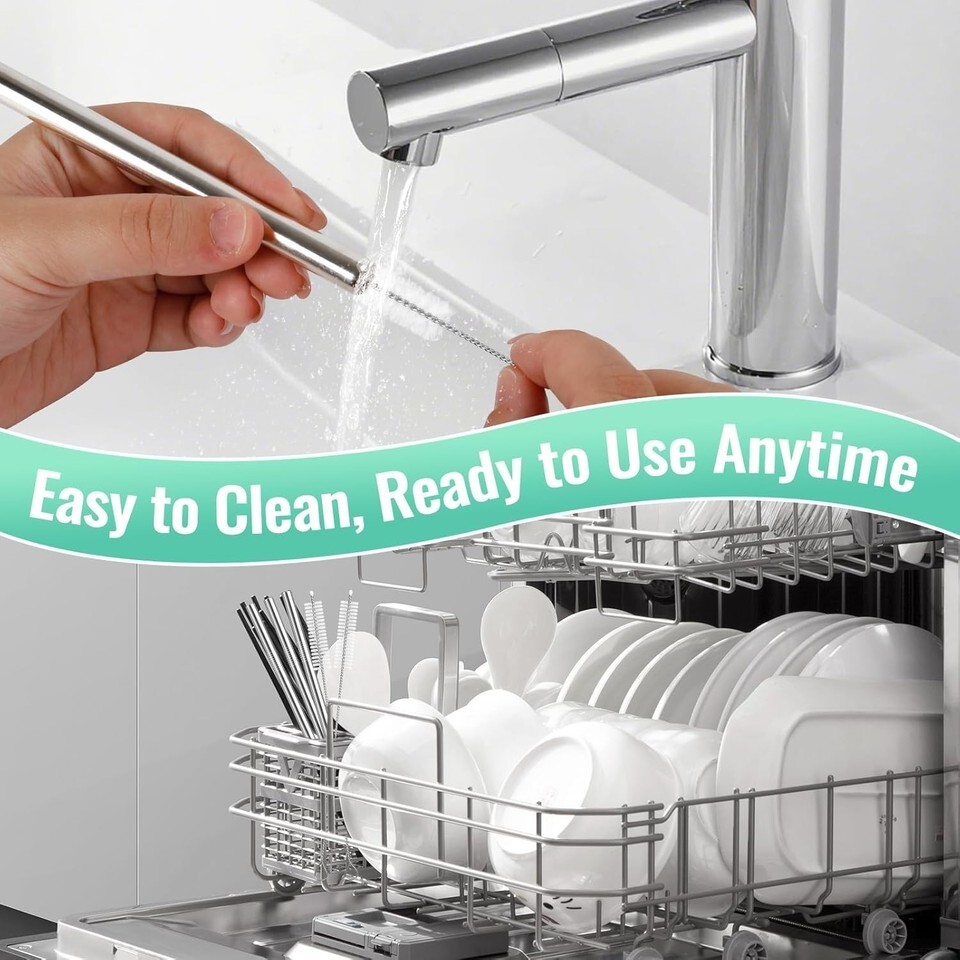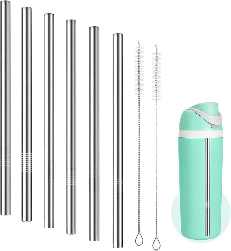Complete Replacement Set: Includes 6 reusable stainless steel straws (16.5 cm / 6.5 in) and 2 cleaning brushes, ensuring you always have a backup ready for uninterrupted sipping.