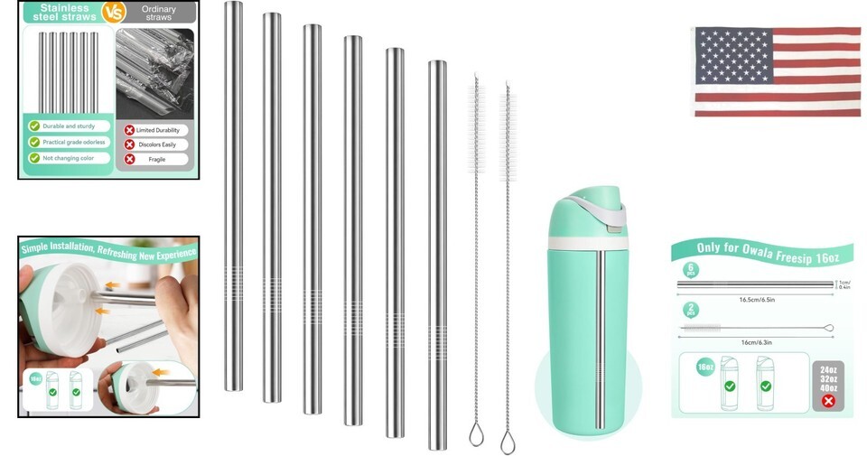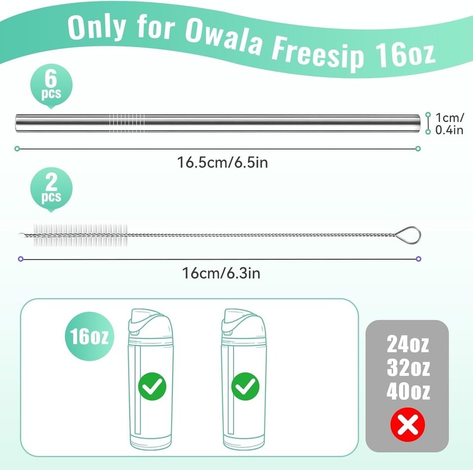 Elevate your child's drinking experience with our meticulously crafted 6-Pack Stainless Steel Replacement Straws designed for the Owala FreeSip 16oz Water Bottle. With high-quality materials that are both eco-friendly and safe for daily use, these straws are the ultimate plastic-free solution for your family's hydration needs.