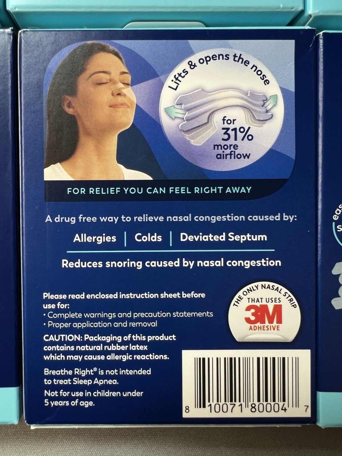 6 Packs - Breathe Right Nasal Strips SMALL / MEDIUM Size, Clear