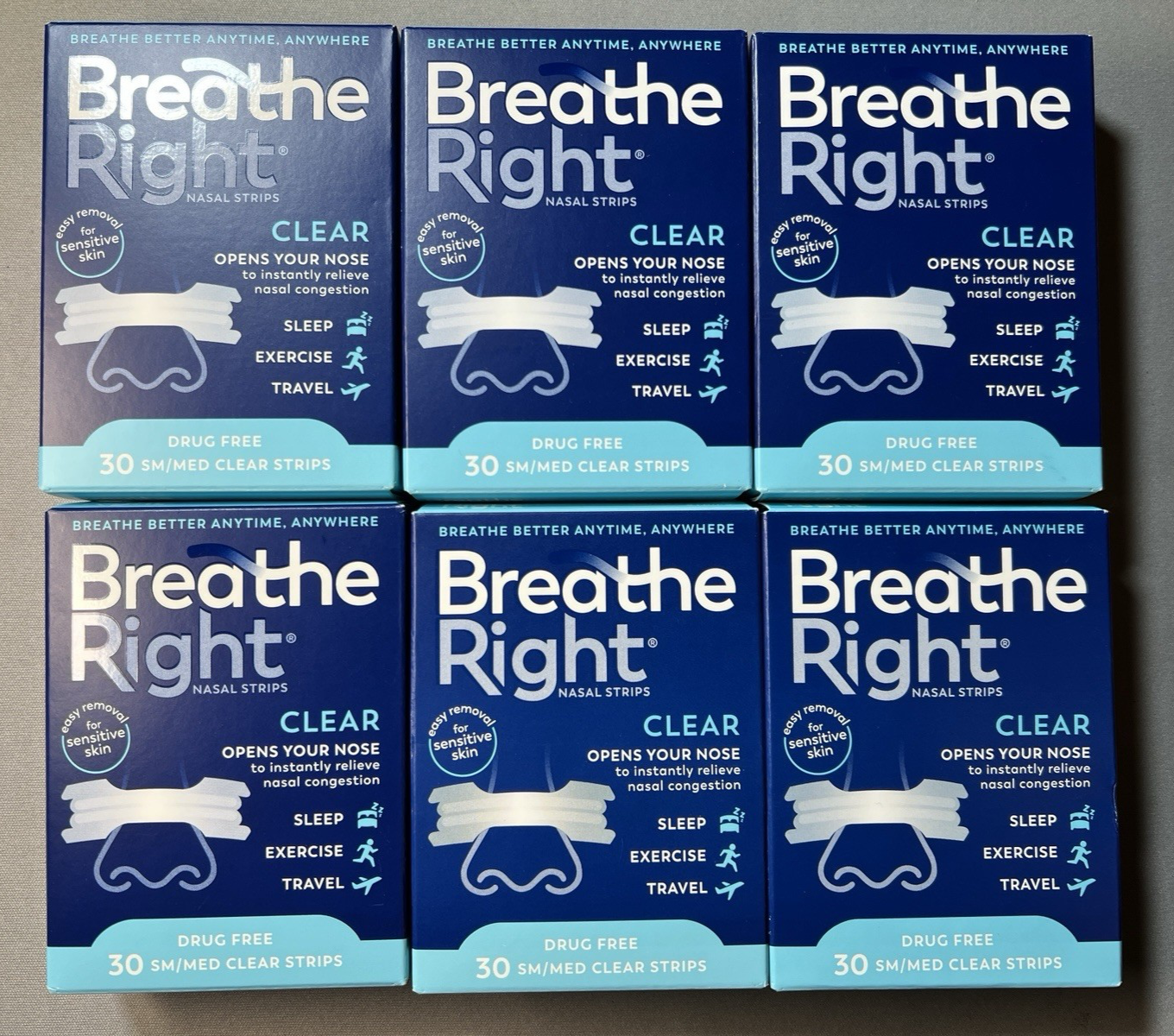 6 Packs - Breathe Right Nasal Strips SMALL / MEDIUM Size, Clear, 30 in Each