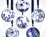 - 6 Pcs Blue and White Christmas Porcelain Balls 2.4 Inch Porcelain Chinoiserie Or