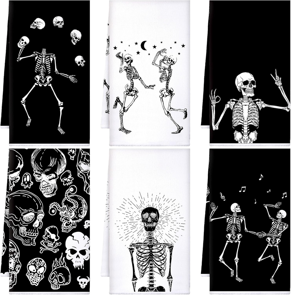 - 6 Pcs Halloween Skull Kitchen Towels Skeleton Dish Hand Towels Gothic Skull Tea