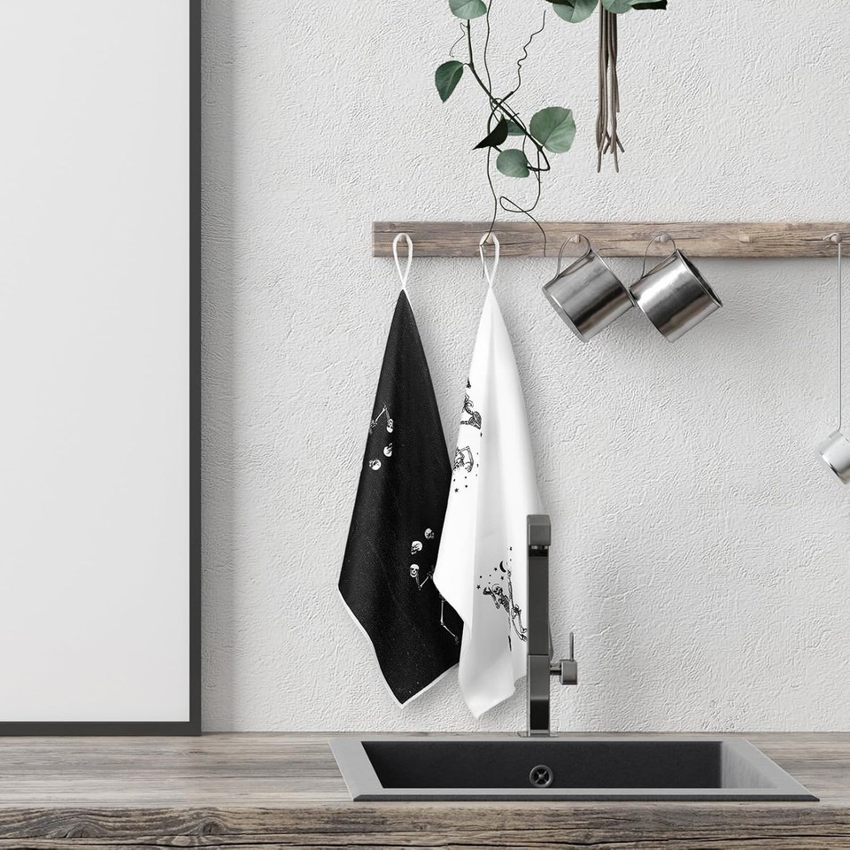 Skull Hand Towels: there are 6 pieces of skeleton kitchen towels, coming with 6 different patterns, which are beautiful and delicate, can meet your daily using demands, and you can change easily, can serve you for a long time