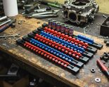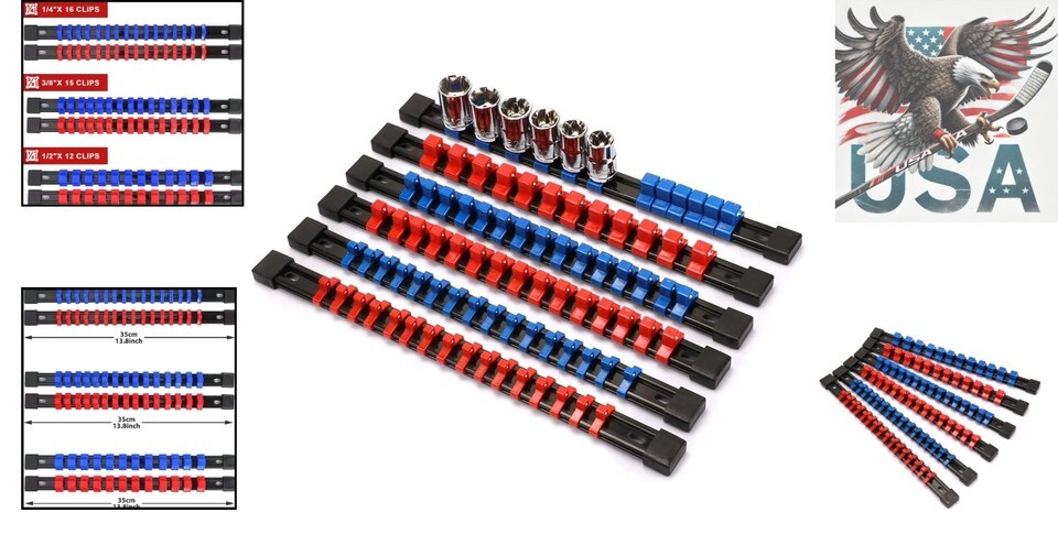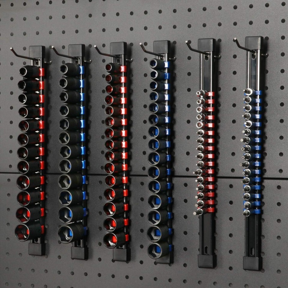 6-Piece Socket Organizer Set, ABS Plastic, Fits 1/4-, 3/8-, 1/2-Inch Sockets, Heavy Duty, Wall Drawer Mount, Blue Red