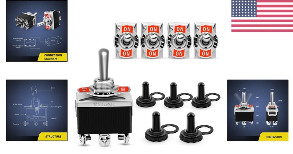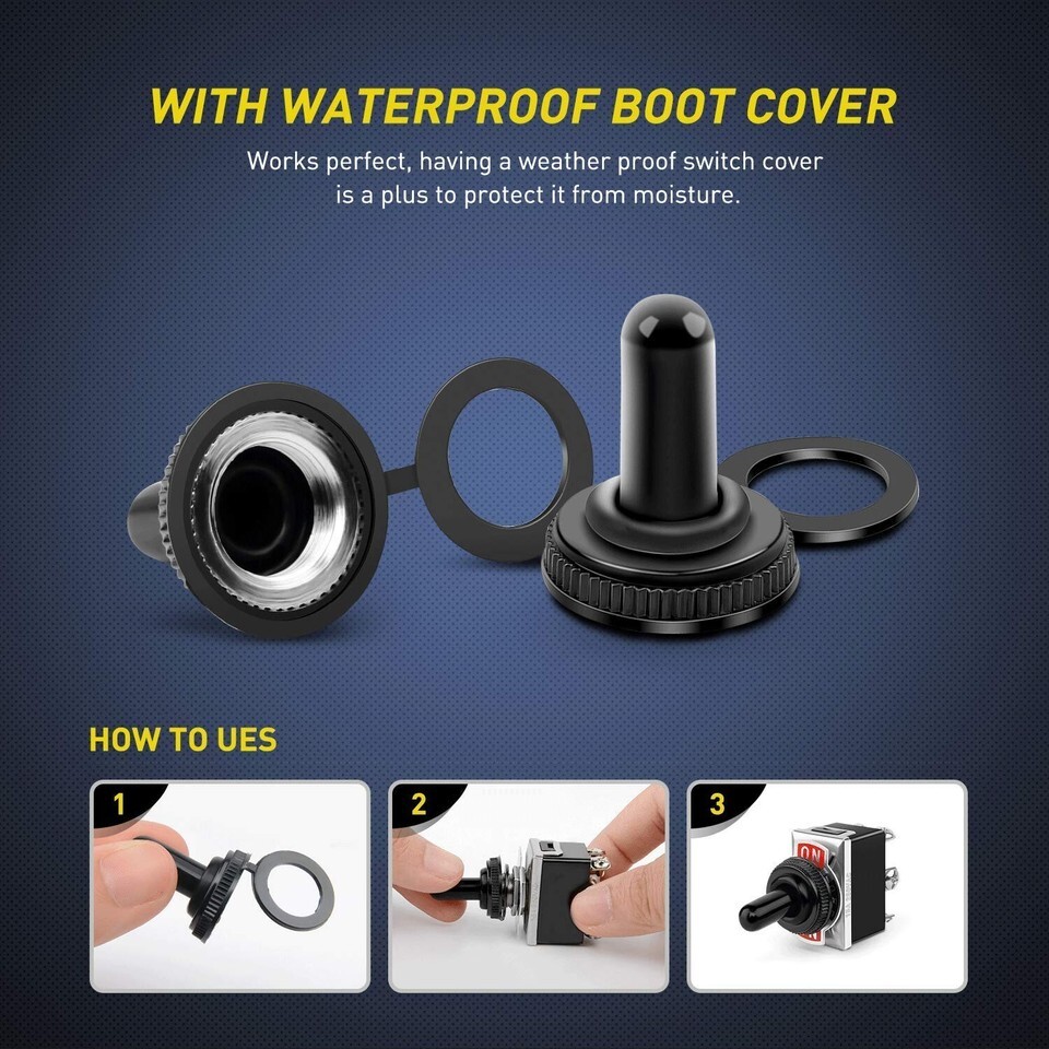 - 6-Pin Rocker Toggle Switches with Waterproof Caps - 15A 250V Rated (5-Pack)