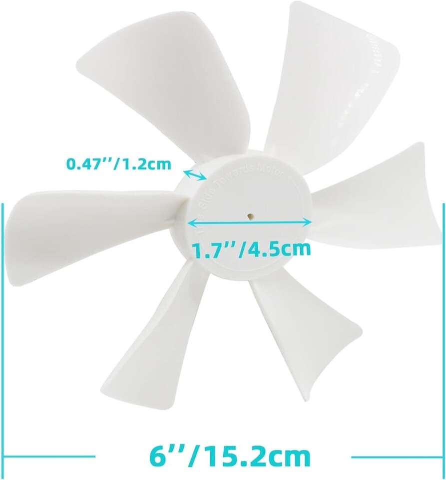 Dimensions: Fan blade length: 2 inches (5.1 cm), Fan diameter: 6 inches (15.2 cm)