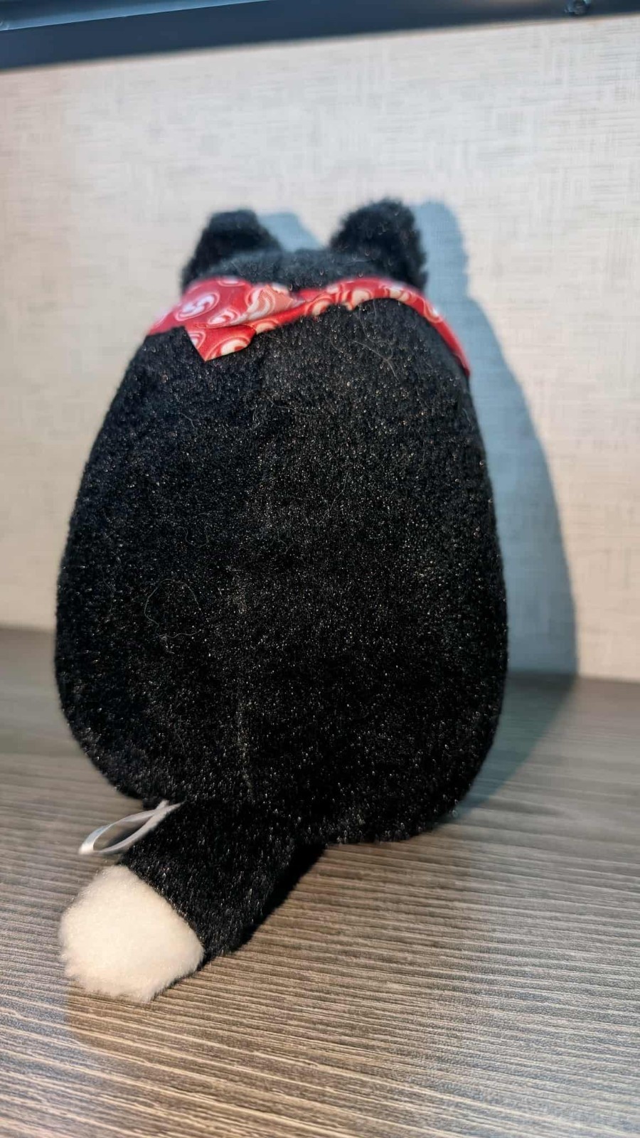 6" RABURI Kawaii USED Neko Cat holding fish Taiyaki Plush Toy BLACK FREE SHIP